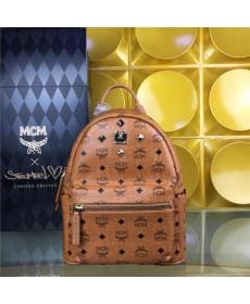 MCM时尚柳钉 土黄色 小号4钉 PVC配皮 女士双肩背包