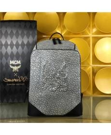 MCM PVC配皮 银灰色 女士双肩背包/方包