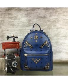 MCM时尚柳钉 小号 宝蓝色 PVC配皮 女士双肩背包