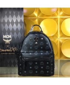 MCM时尚柳钉 黑色 小号4钉 PVC配皮 女士双肩背包