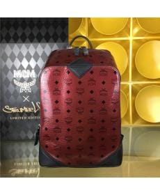 MCM PVC配皮 枣红色 女士双肩背包/方包