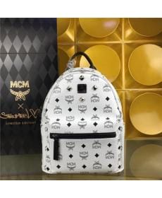 MCM时尚柳钉 白色 小号4钉 PVC配皮 女士双肩背包
