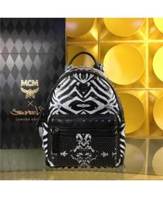 MCM时尚柳钉 PVC配皮 斑马印花 女士迷你双肩背包