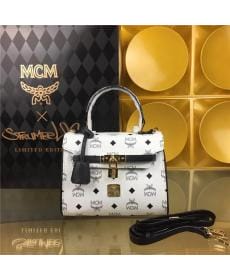 MCM PVC配皮 白色 小号 女士手提包/单肩斜跨包