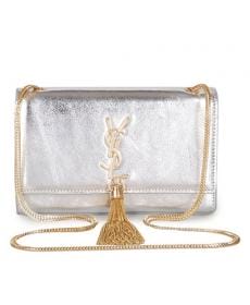 YSL圣罗兰 流苏肩背包 晚装包 银色
