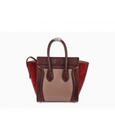 Celine赛琳 时尚新款肉色配深枣红配大红中号 女士手提包3308