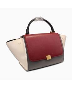 Celine赛琳 时尚新款枣红配烟灰配米白 女士手提包6608