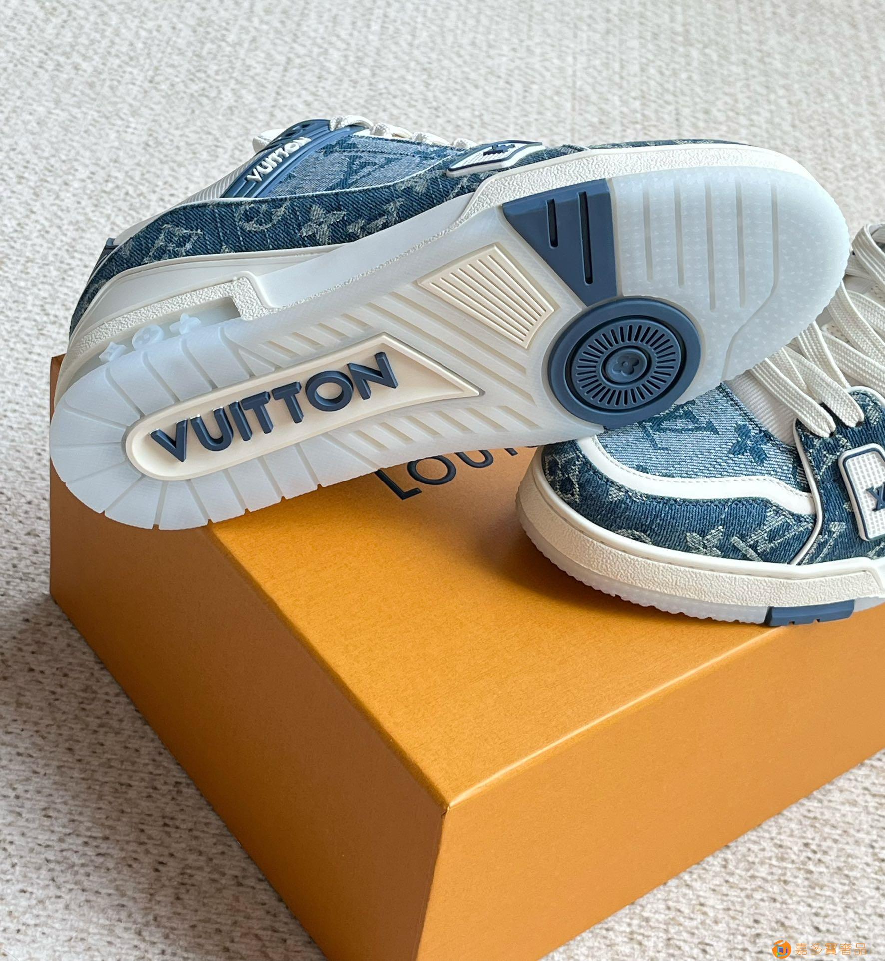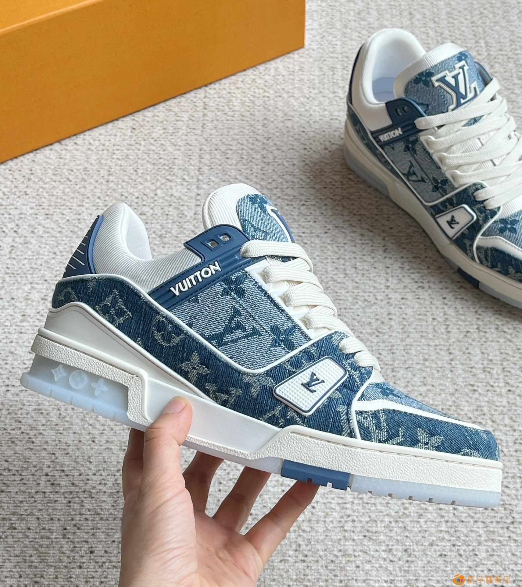 新款LV男士丹宁牛仔做旧水洗运动休闲板鞋 顶级品质 ,本款