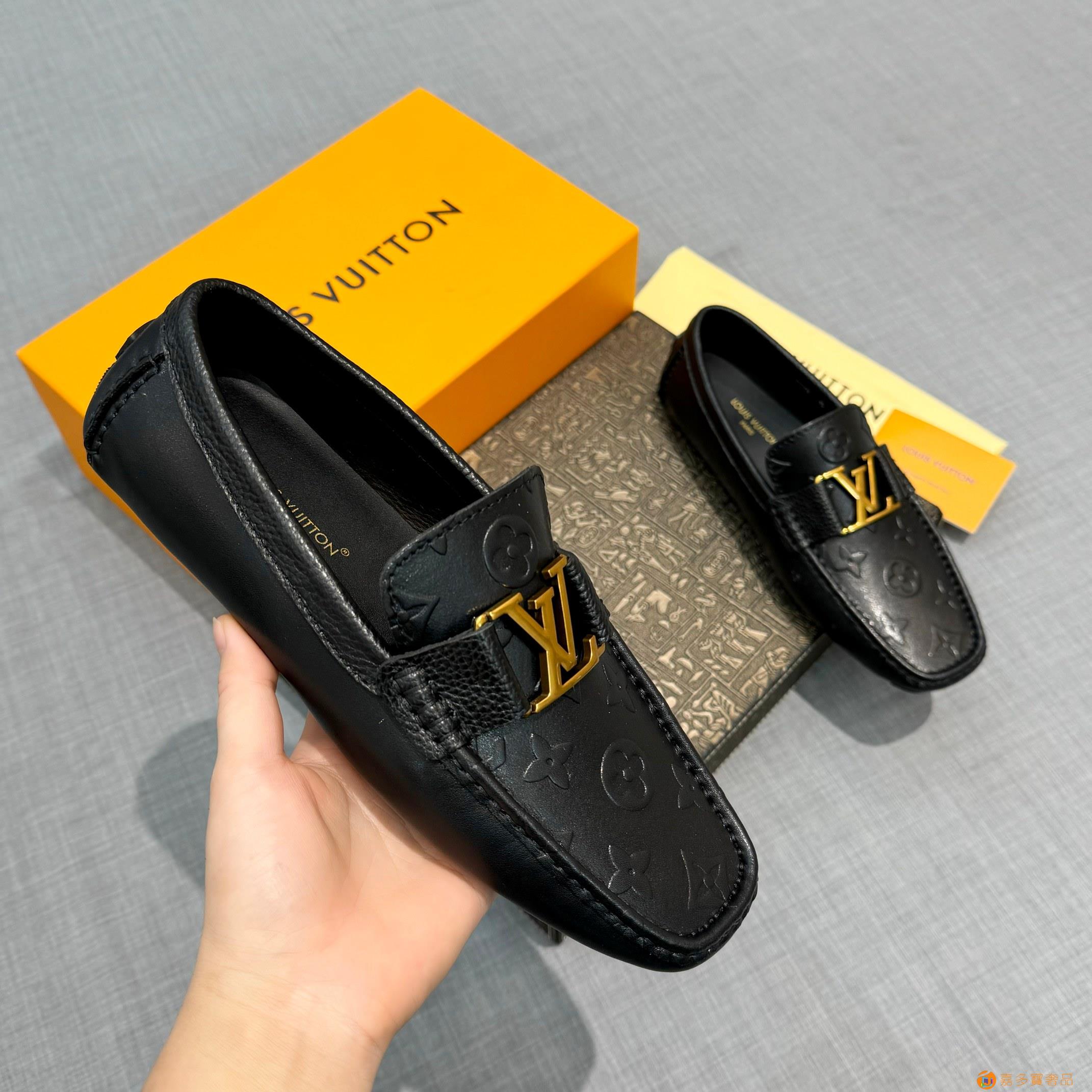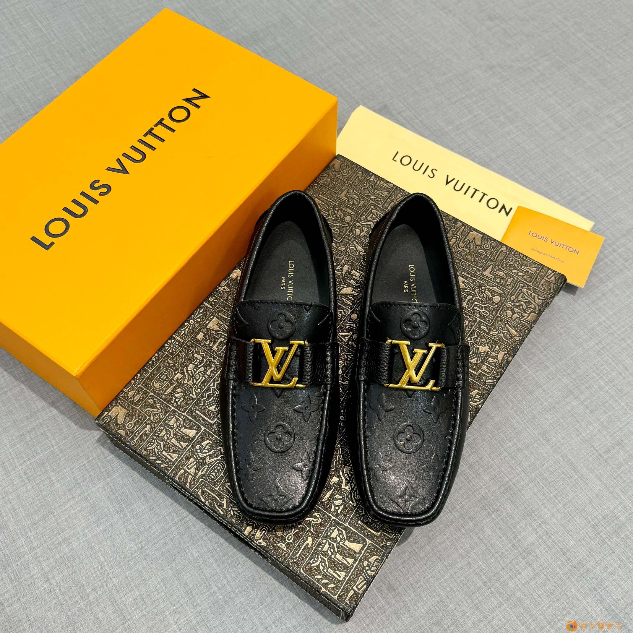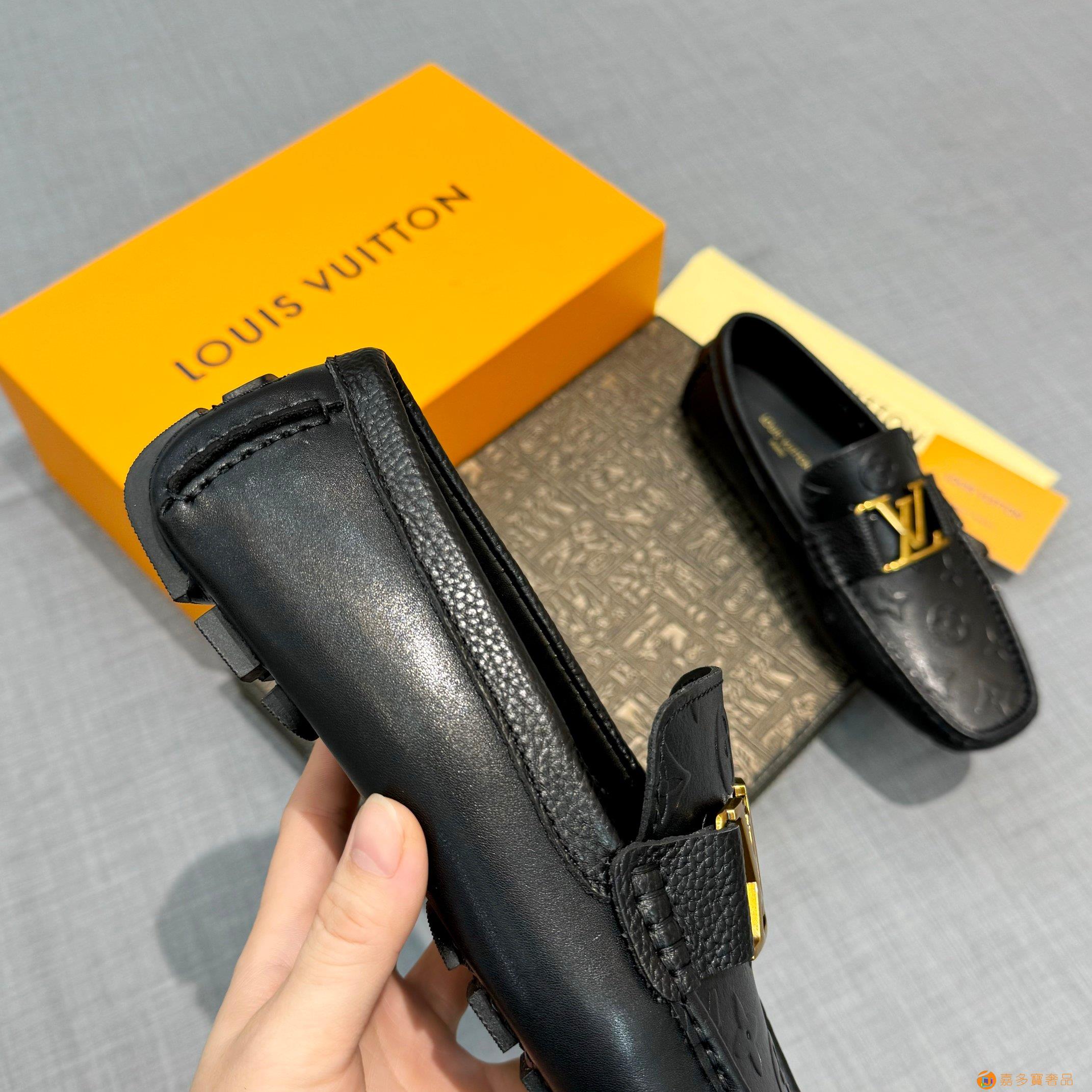 【LV 家】男士豆豆鞋 官网同步〈市场顶级版本〉牛皮压花+黑