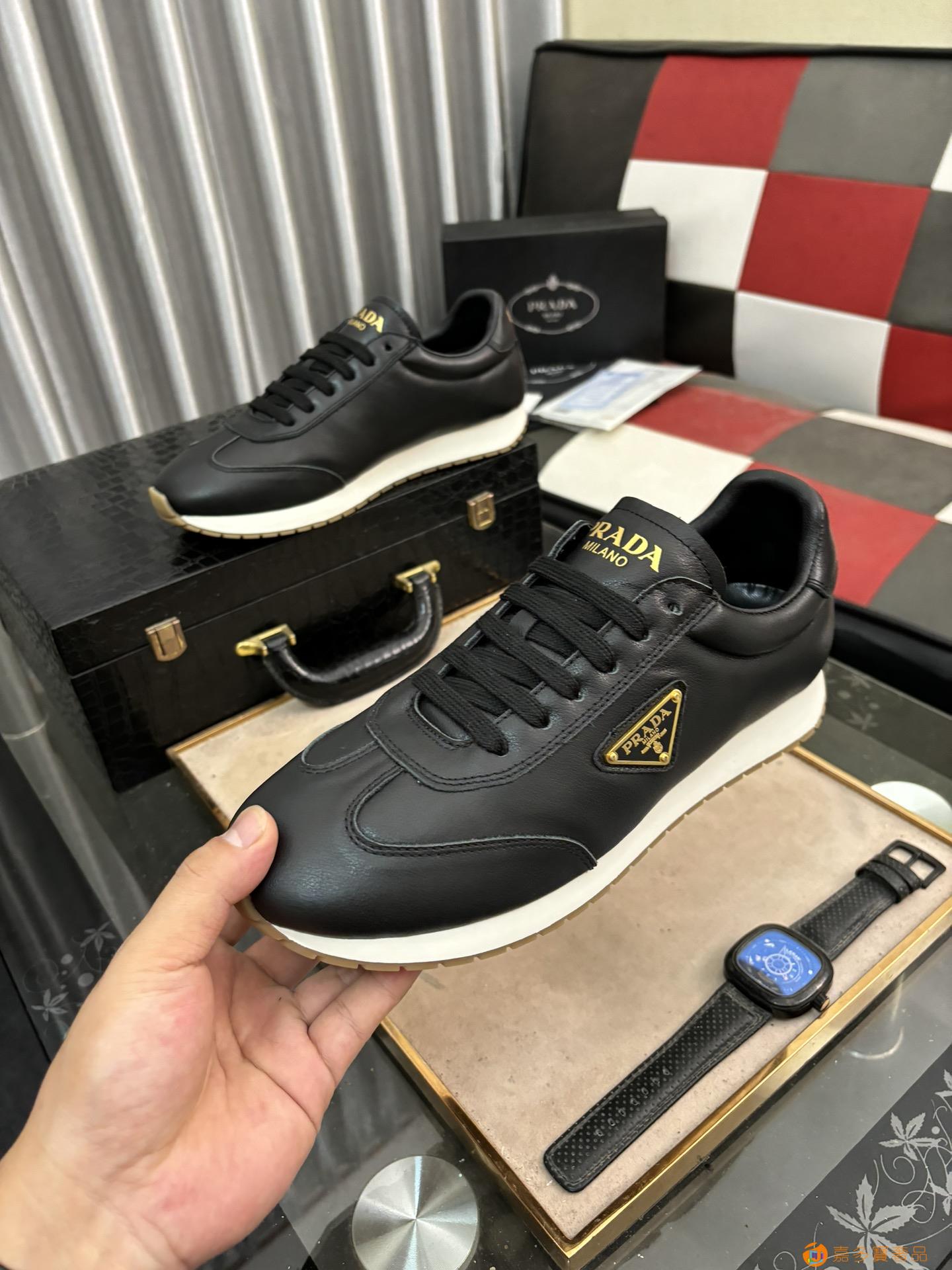 rada/普拉达 男士新款高帮皮革休闲运动鞋