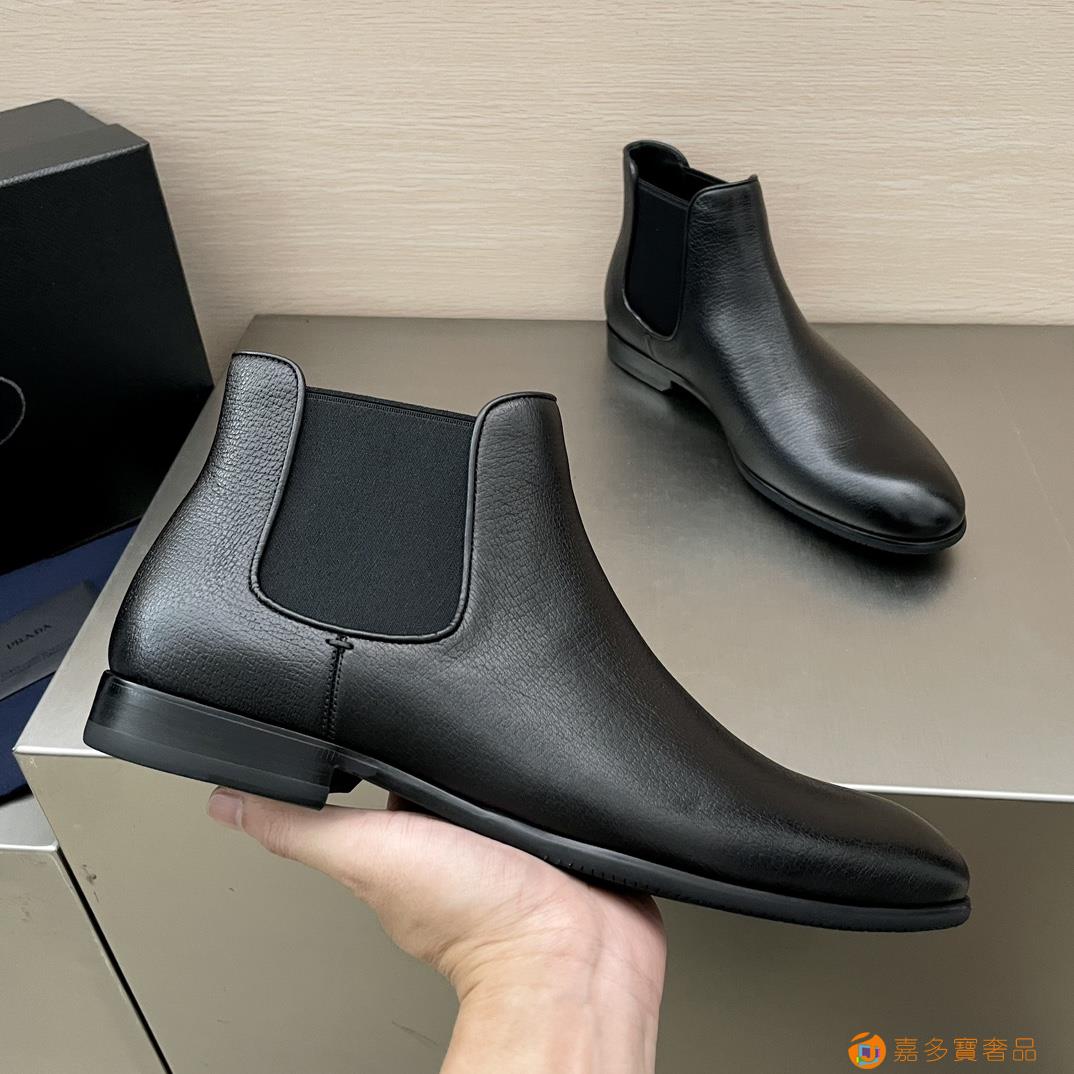 rada/普拉达 Saffiano皮革切尔西绒毛短靴