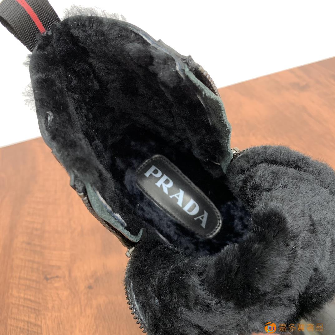 rada/普拉达 Saffiano皮革切尔西绒毛短靴