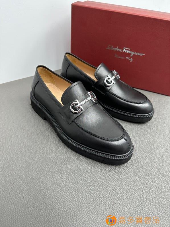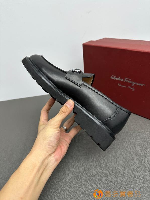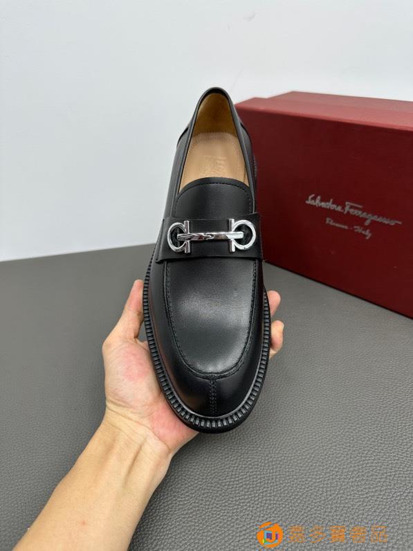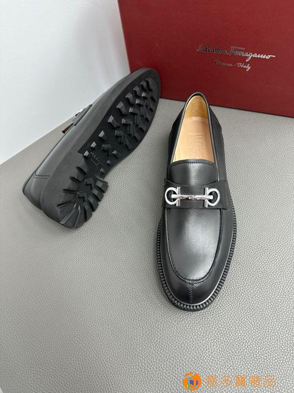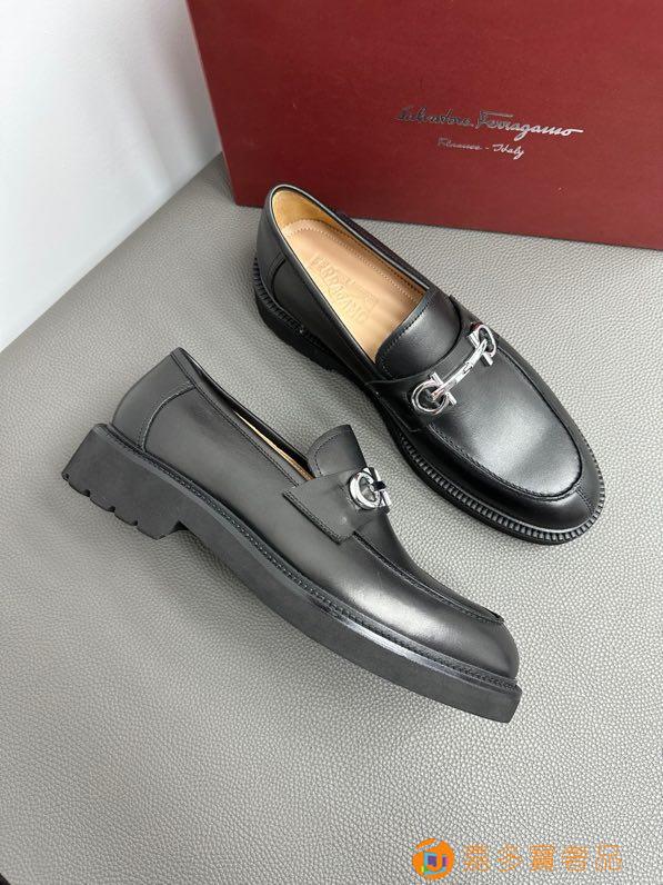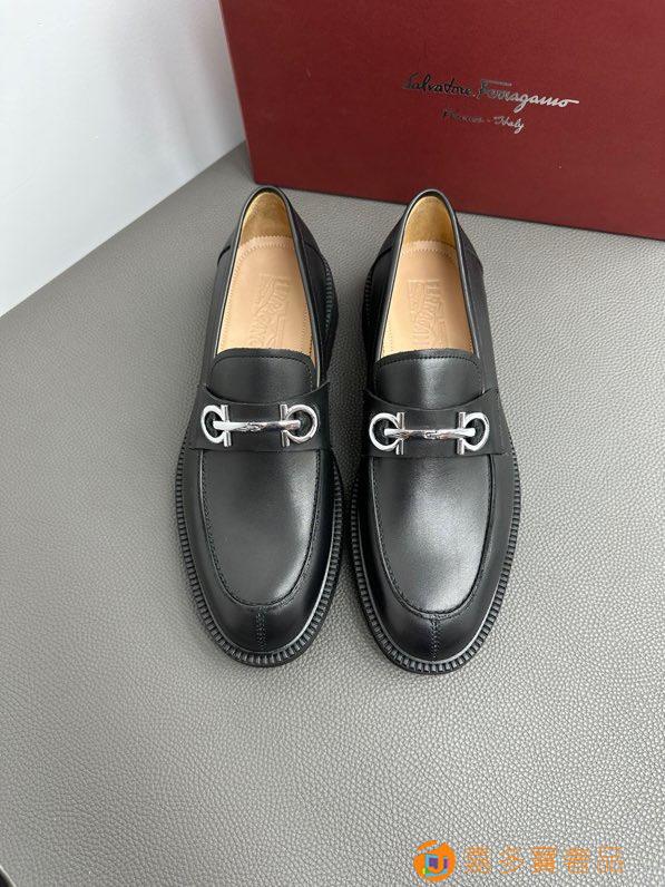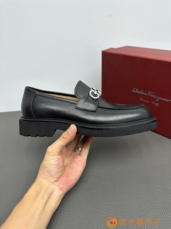 菲拉格慕*皮鞋,黑色牛皮面料,水染小牛皮内里,原版超轻大底,