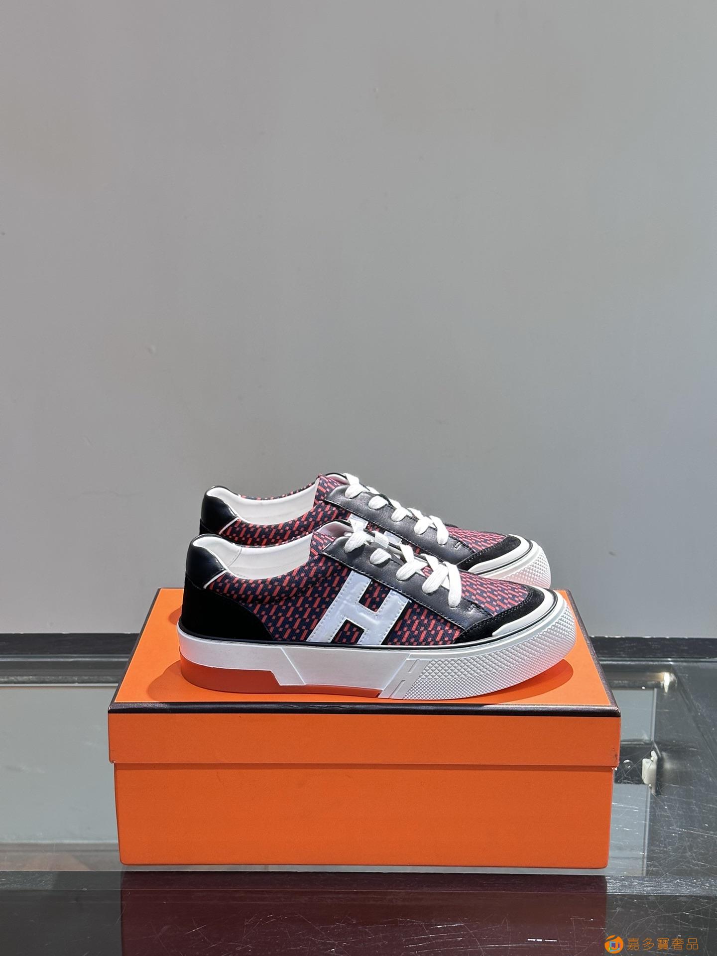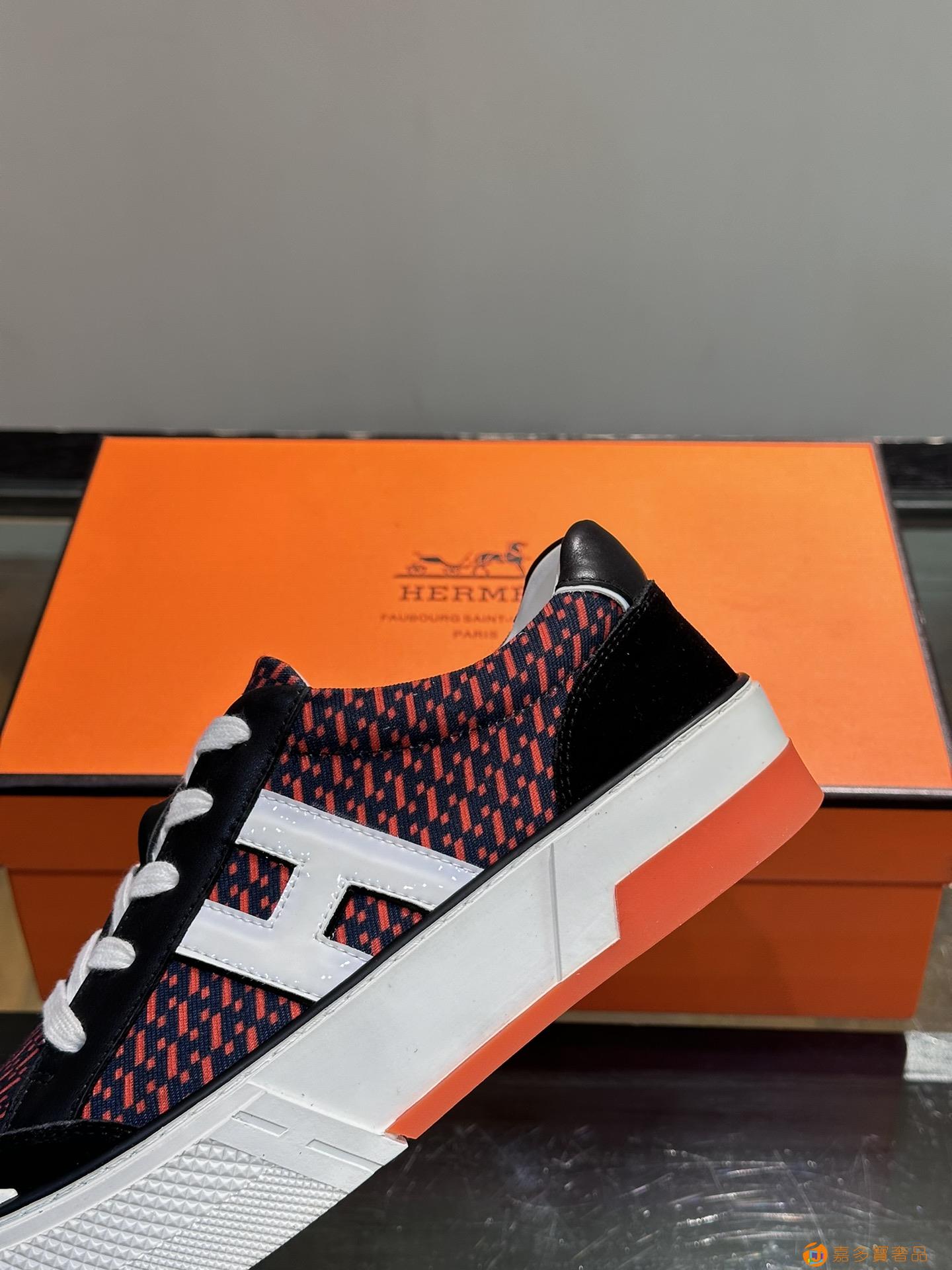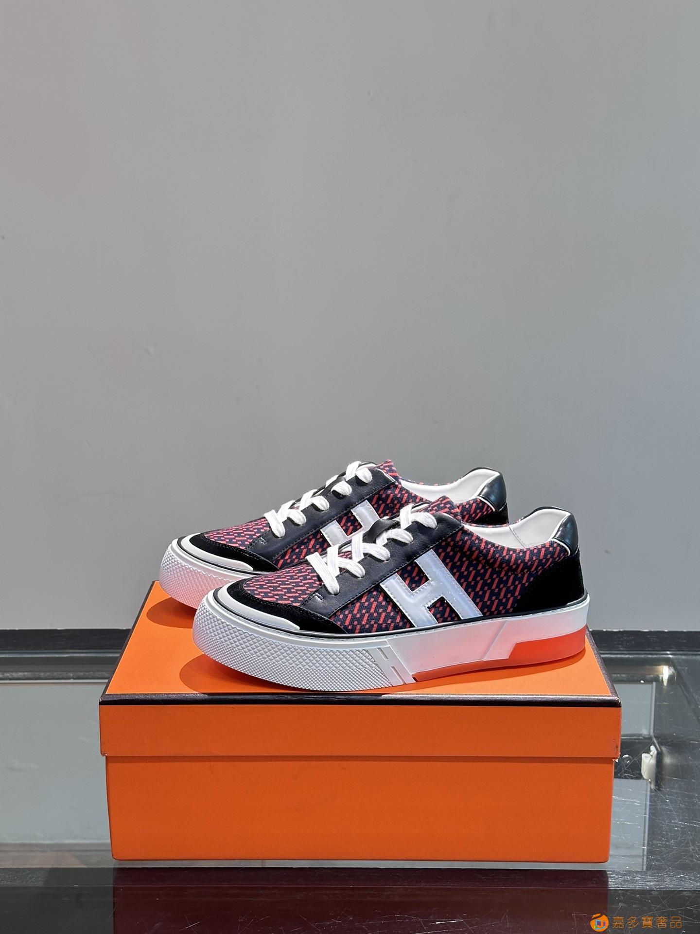 H 爱马仕高端奢品,男士低帮厚底休闲运动鞋,牛皮拼接原版印花