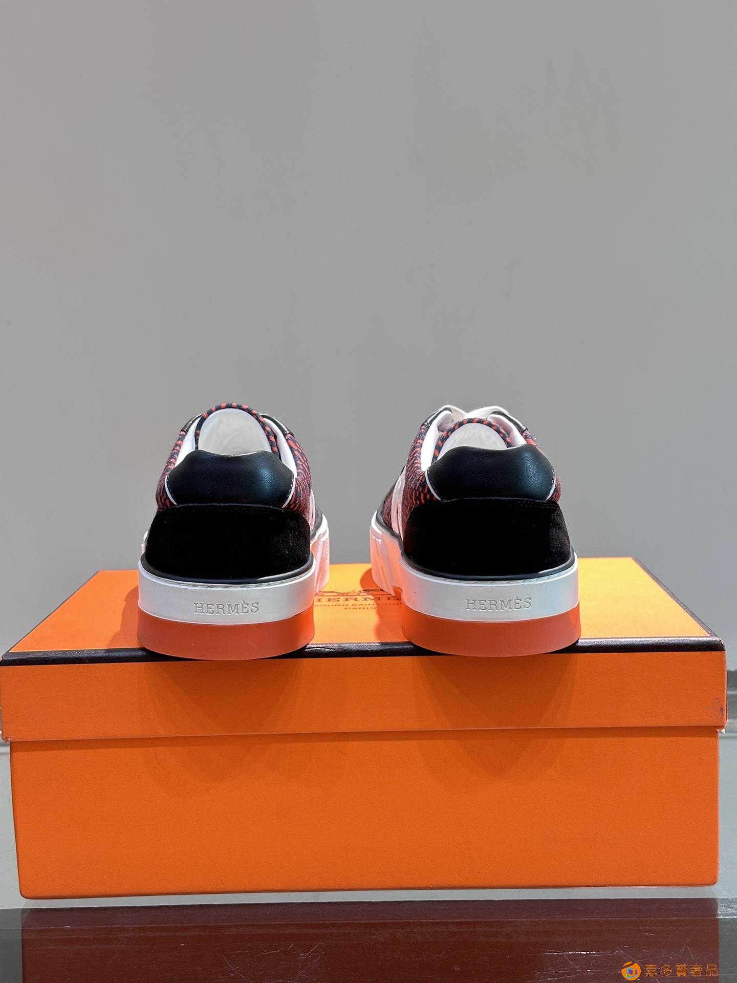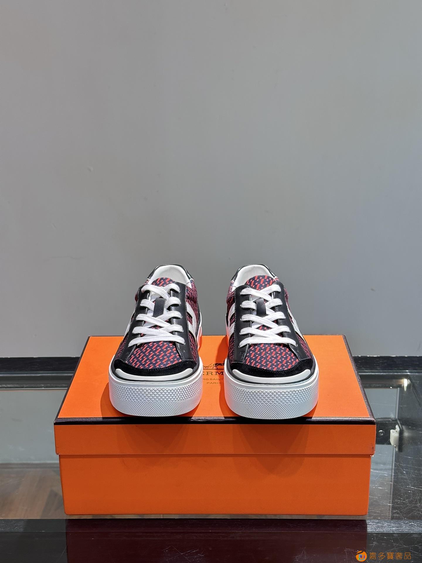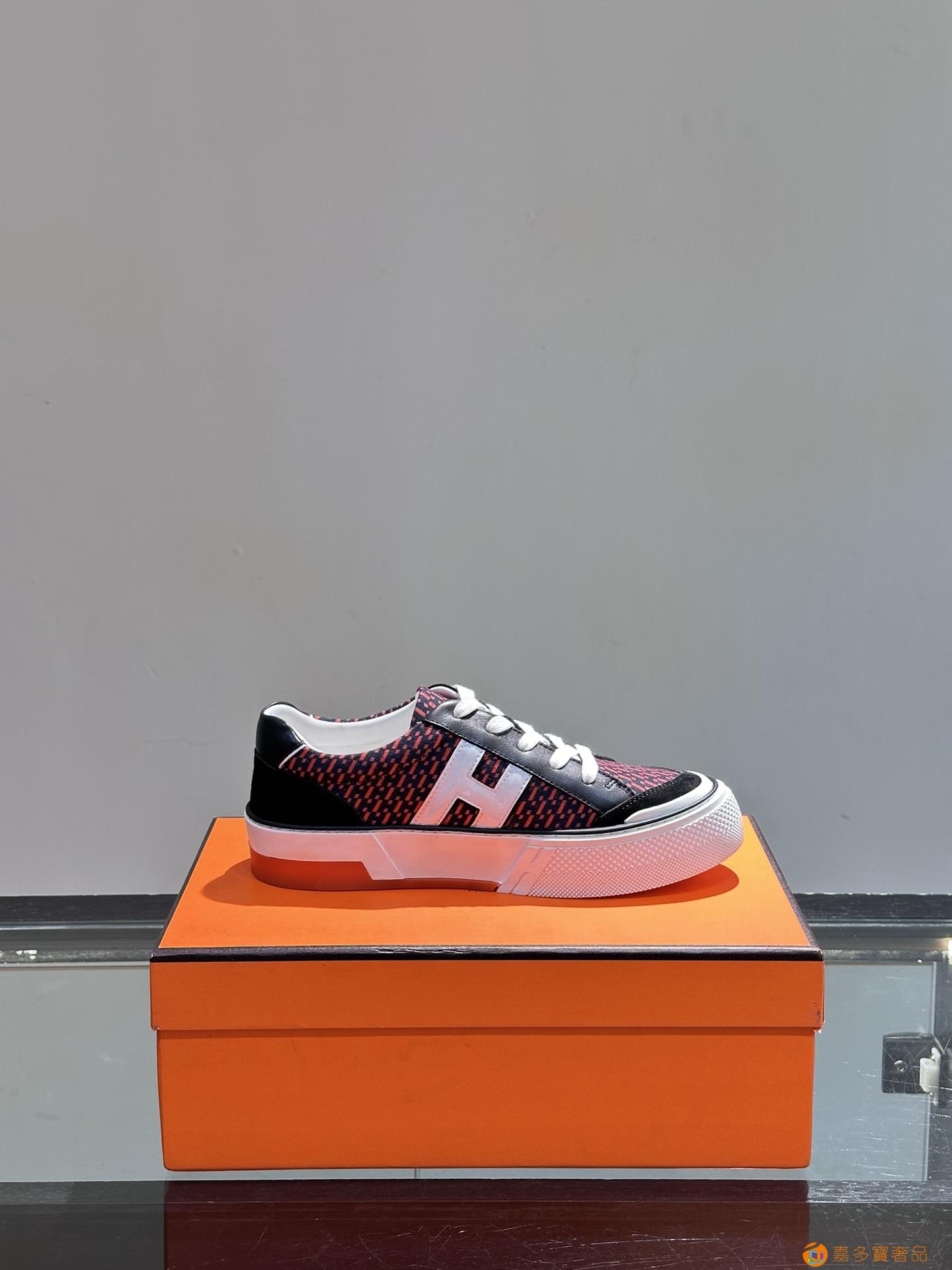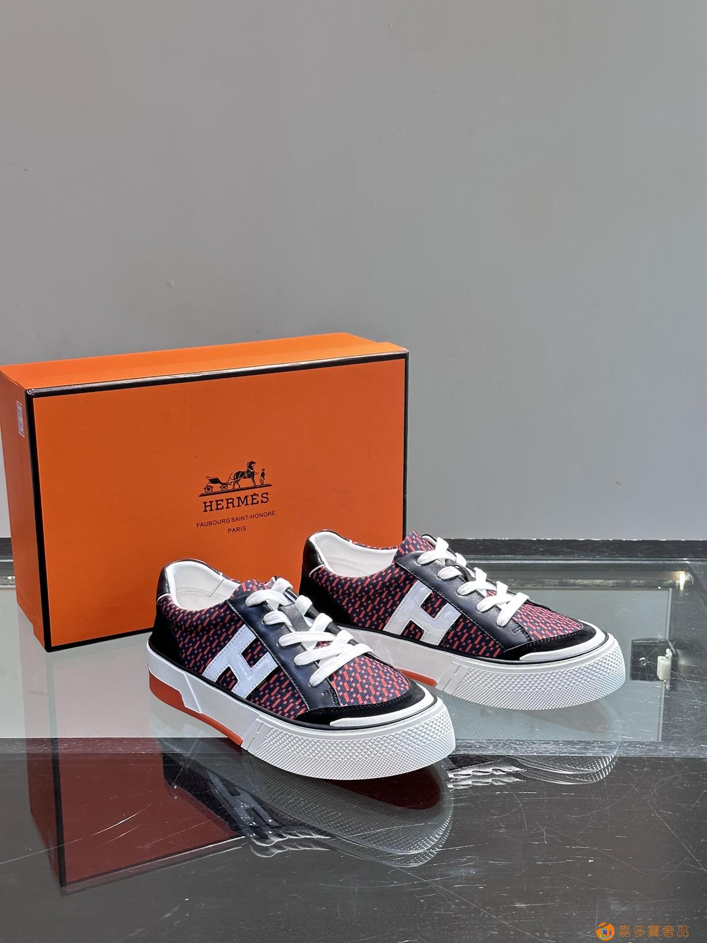 H 爱马仕高端奢品,男士低帮厚底休闲运动鞋,牛皮拼接原版印花