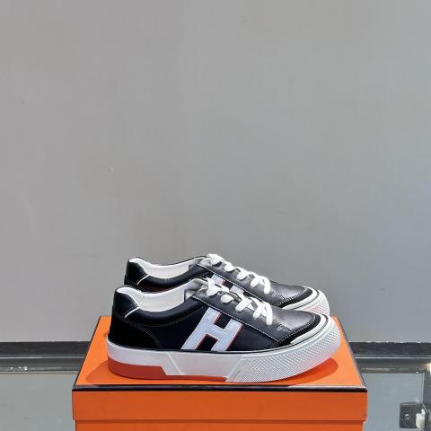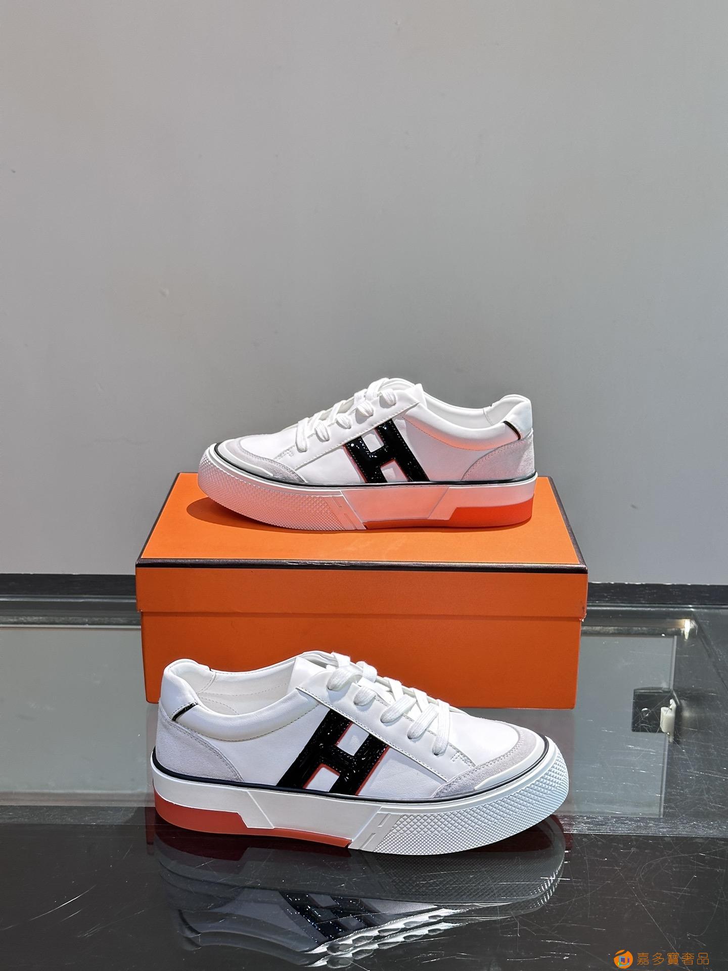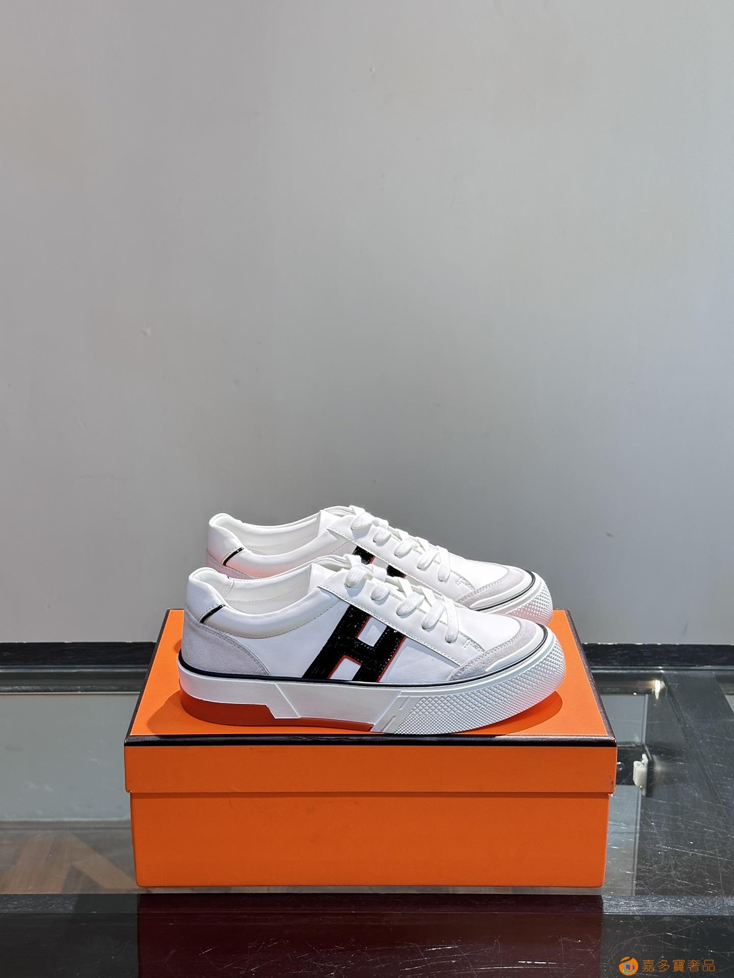 H 爱马仕高端奢品,男士低帮厚底休闲运动鞋,牛皮拼接原版印花