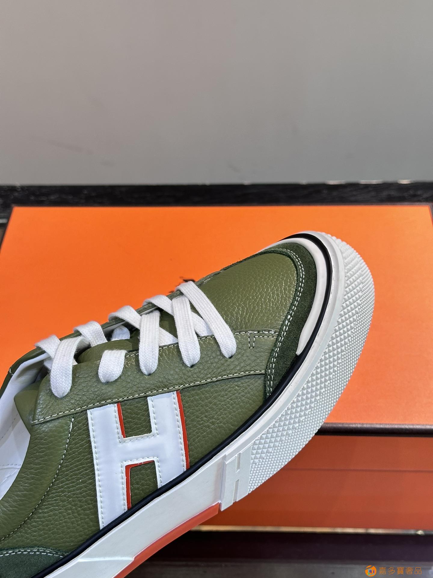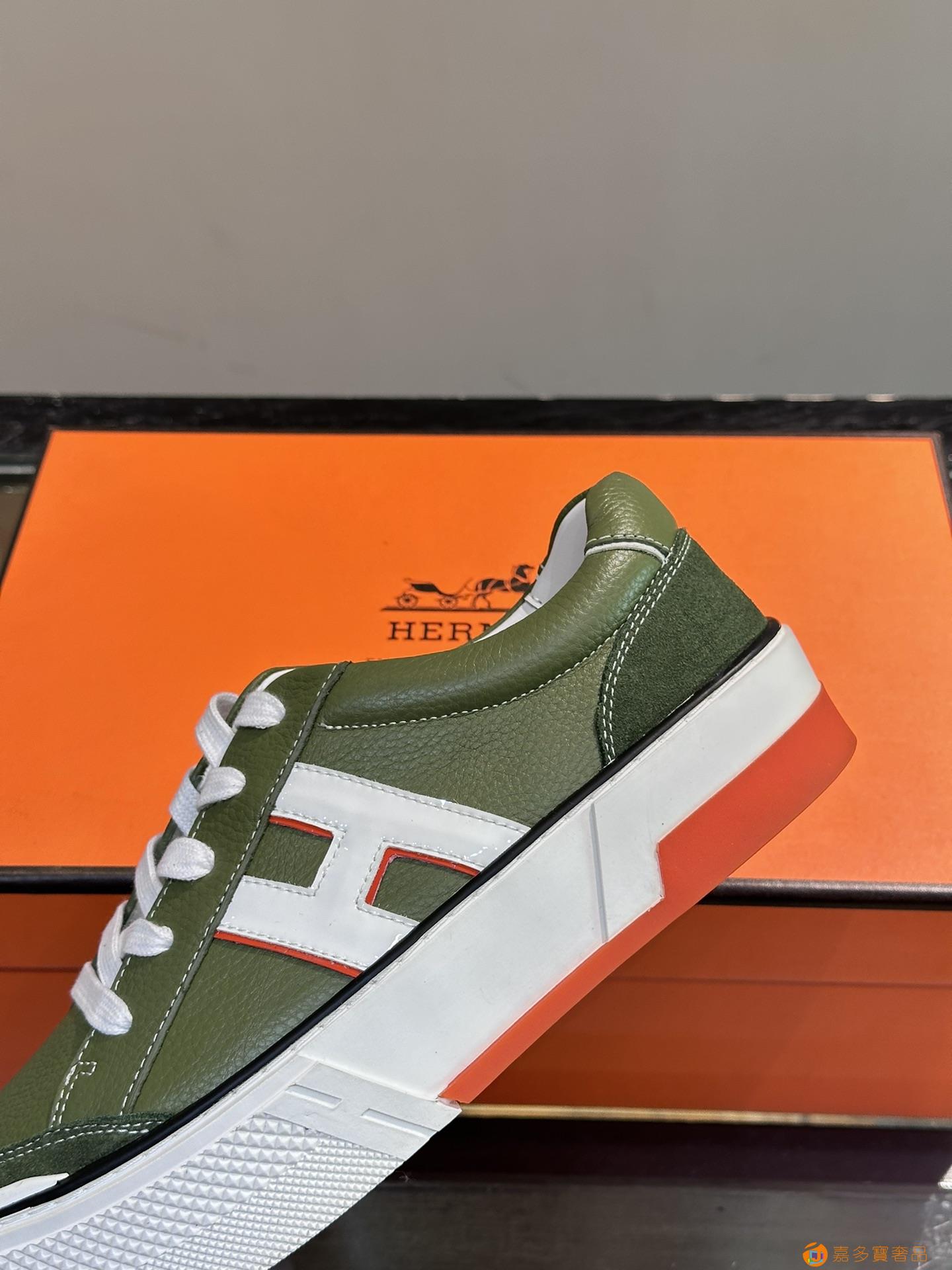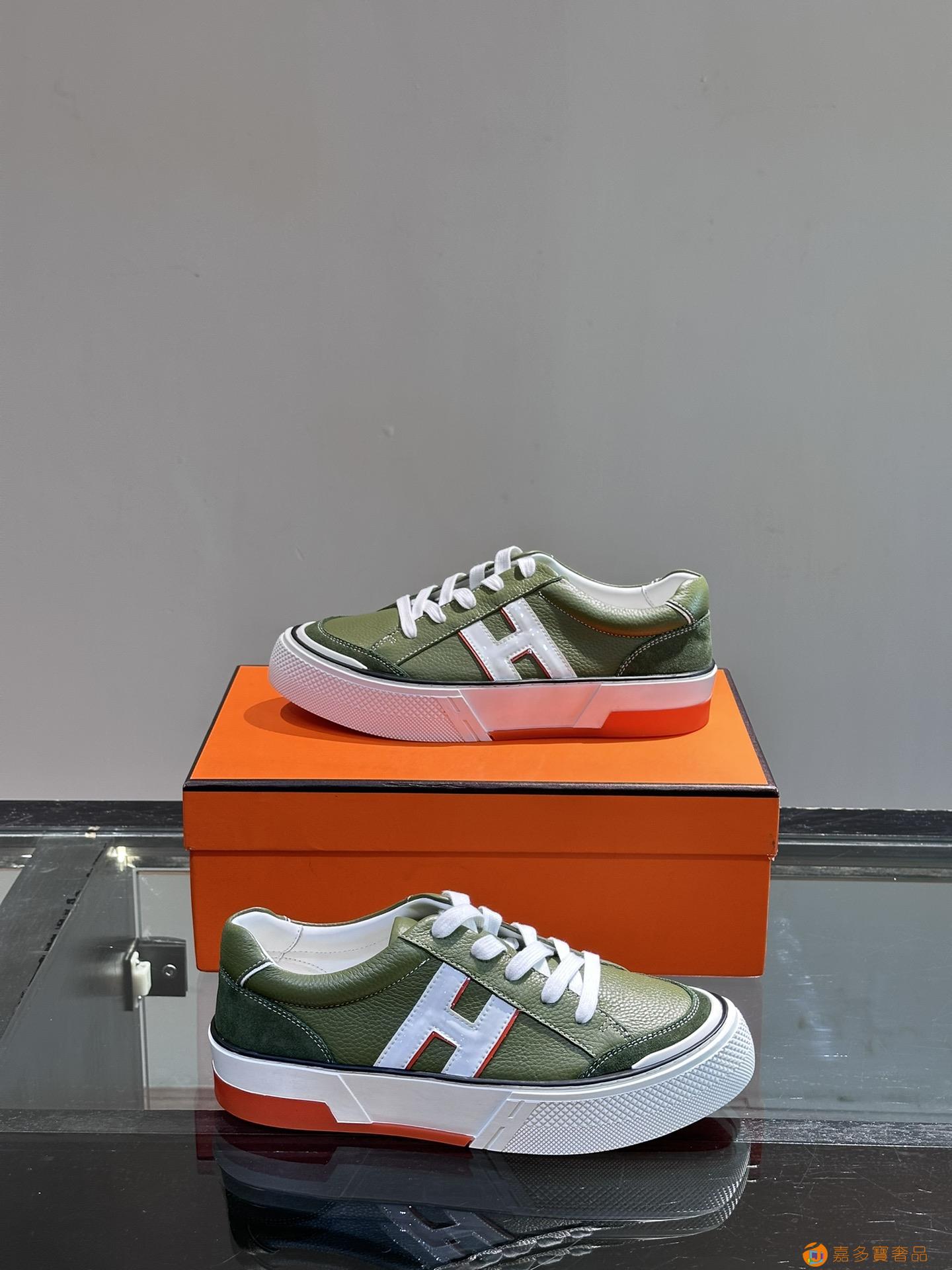 H 爱马仕高端奢品,男士低帮厚底休闲运动鞋,牛皮拼接原版印花