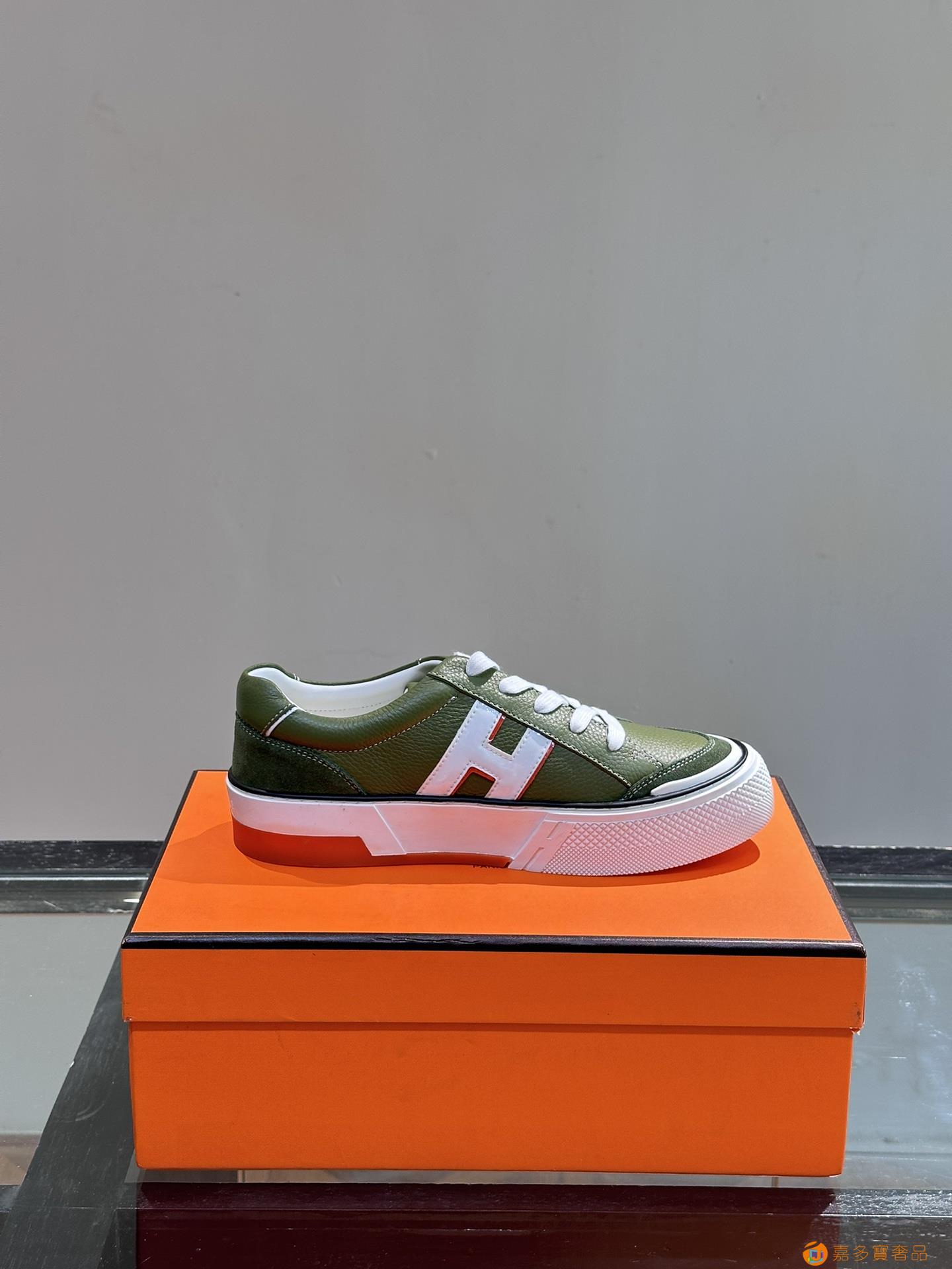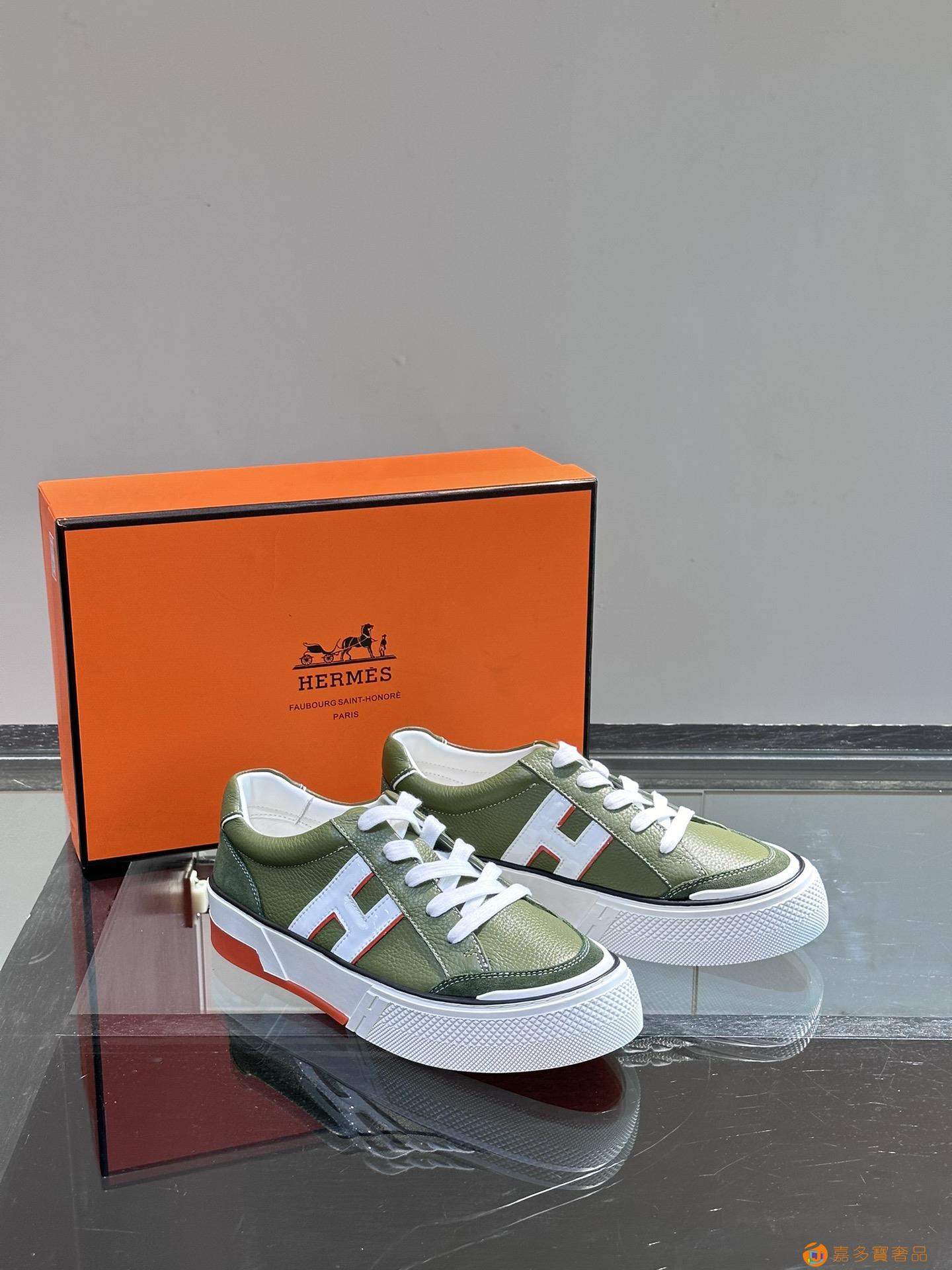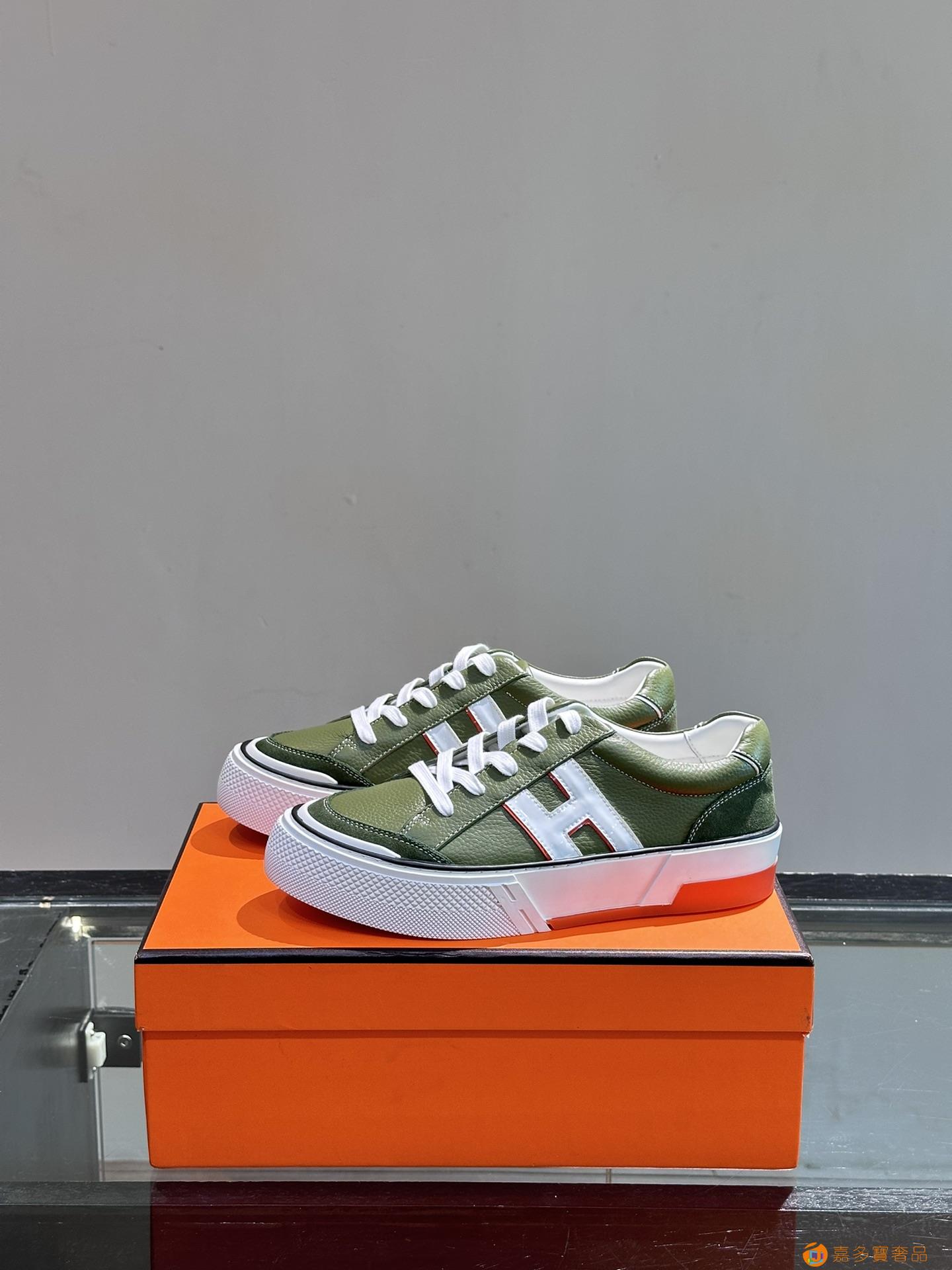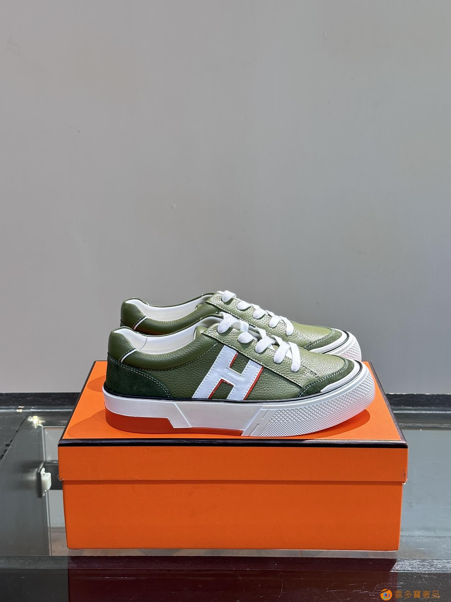 H 爱马仕高端奢品,男士低帮厚底休闲运动鞋,牛皮拼接原版印花