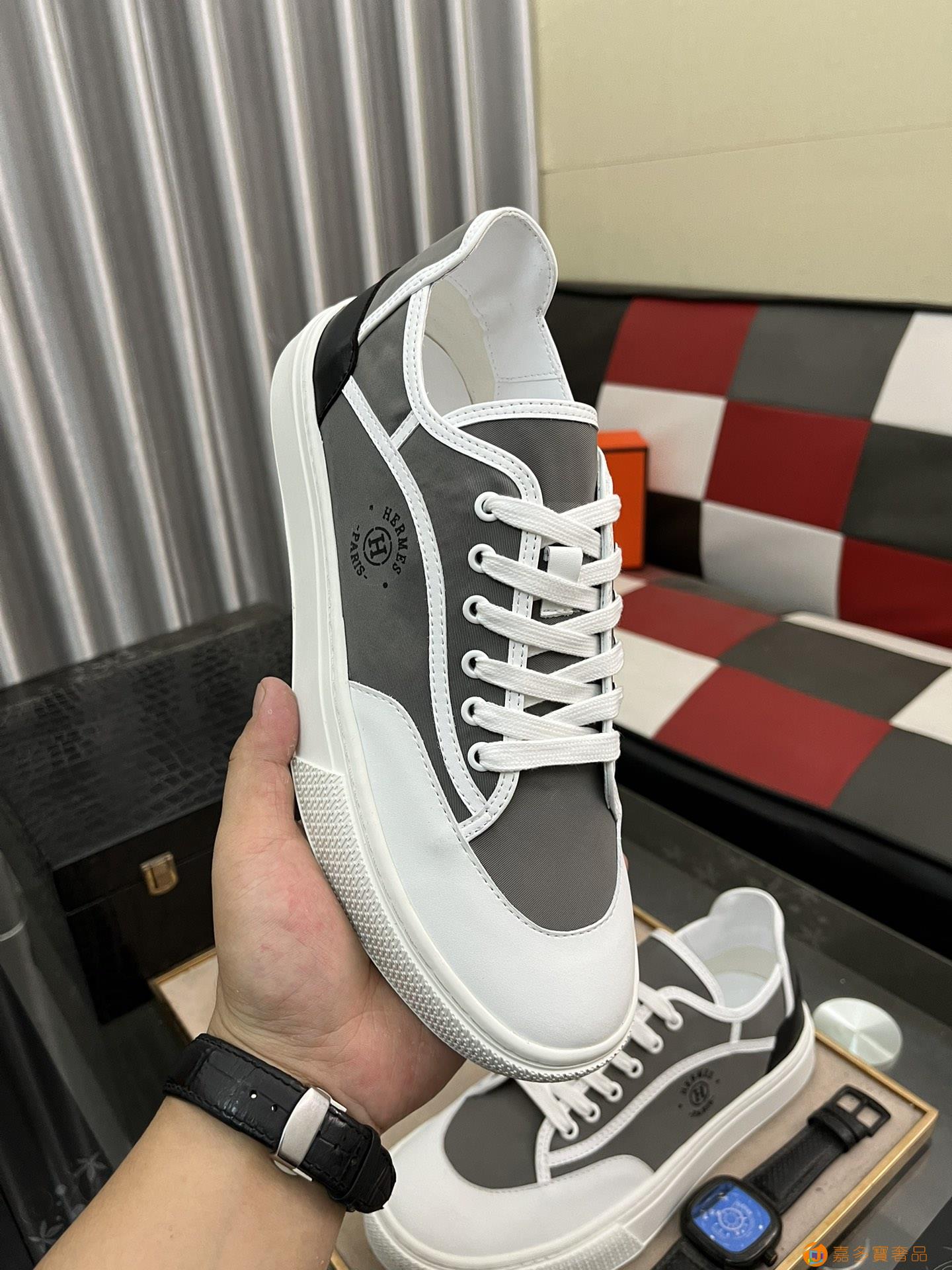 H 爱马仕高端奢品,男士低帮厚底休闲运动鞋,牛皮打造,精品级