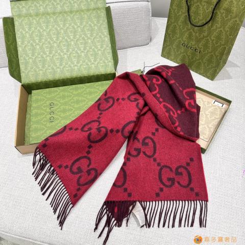 ????? 新款 大G双面羊绒围巾 黑灰