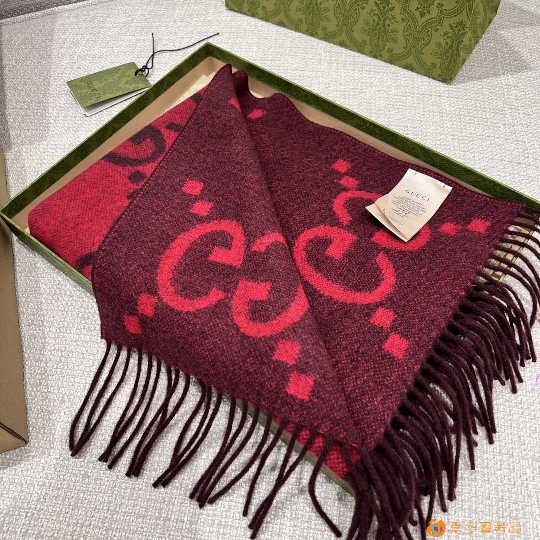 ????? 新款 大G双面羊绒围巾 黑灰