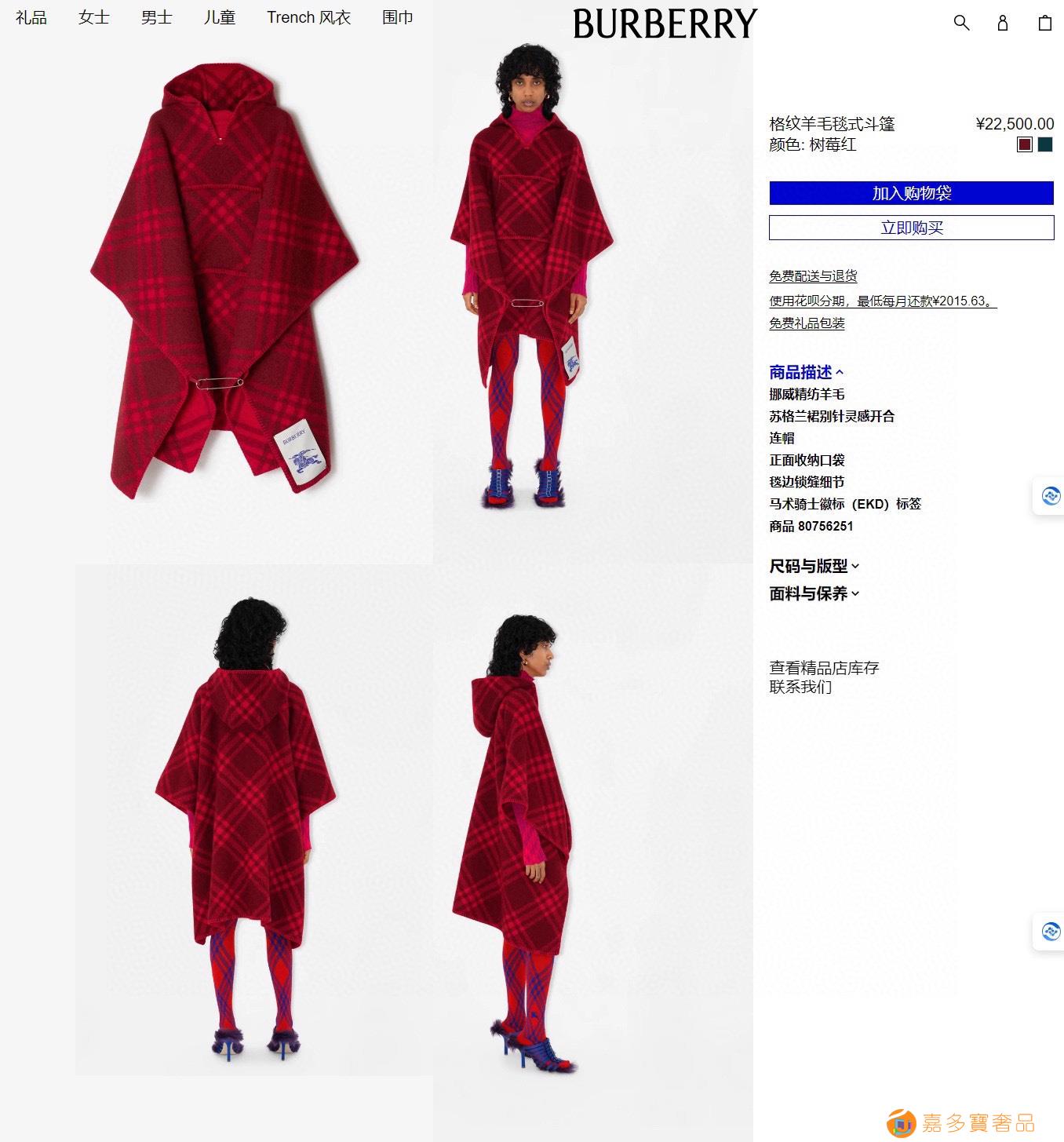 ✨✨【配围巾扣】【▪️同步专柜!Burberry套头条纹斗篷