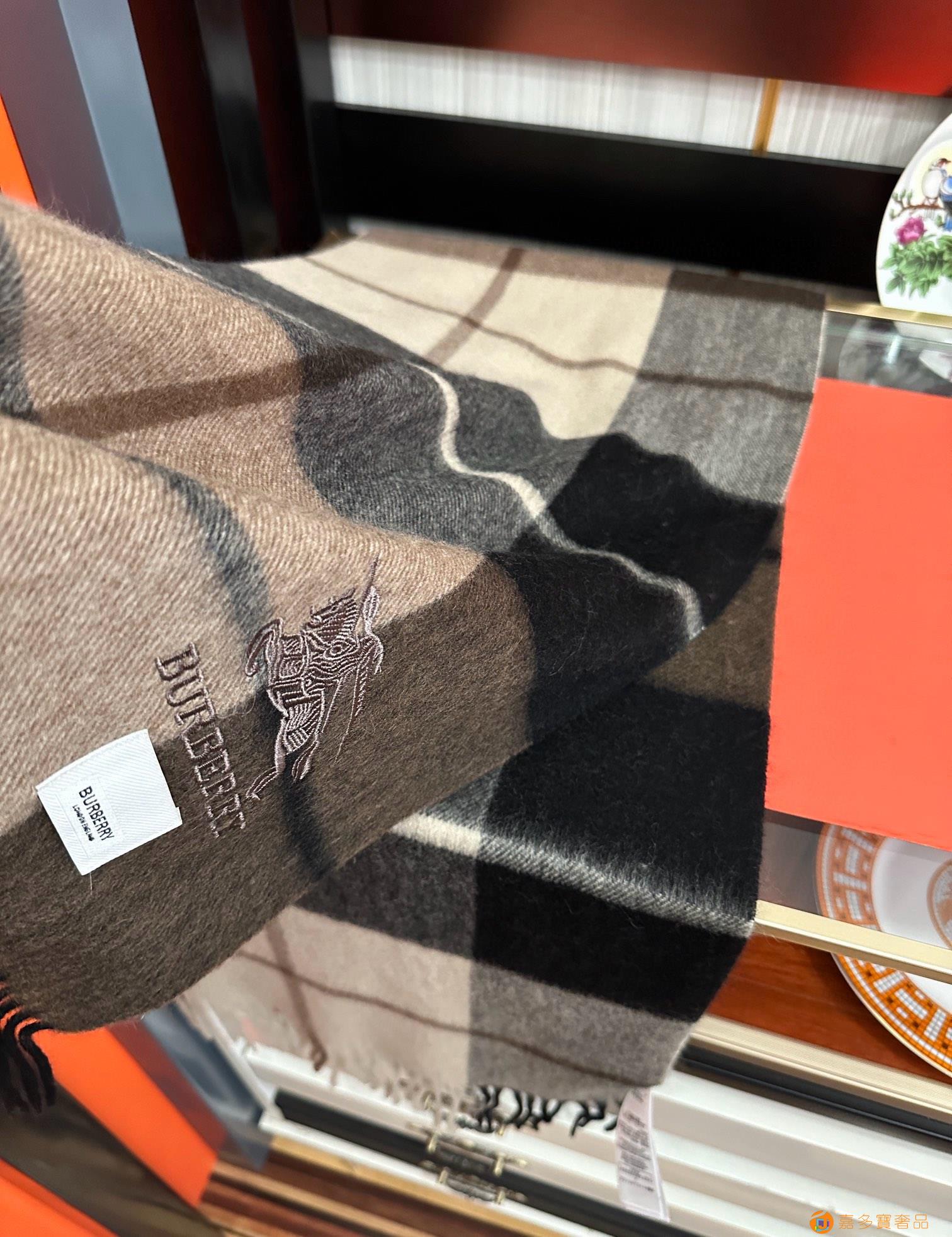 王牌口碑burberry深度水波纹经典羊绒格子围巾‼专柜最新