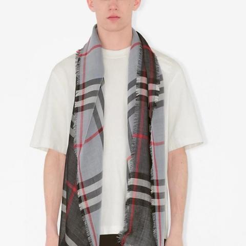王牌口碑burberry深度水波纹经典羊绒格子围巾‼专柜最新