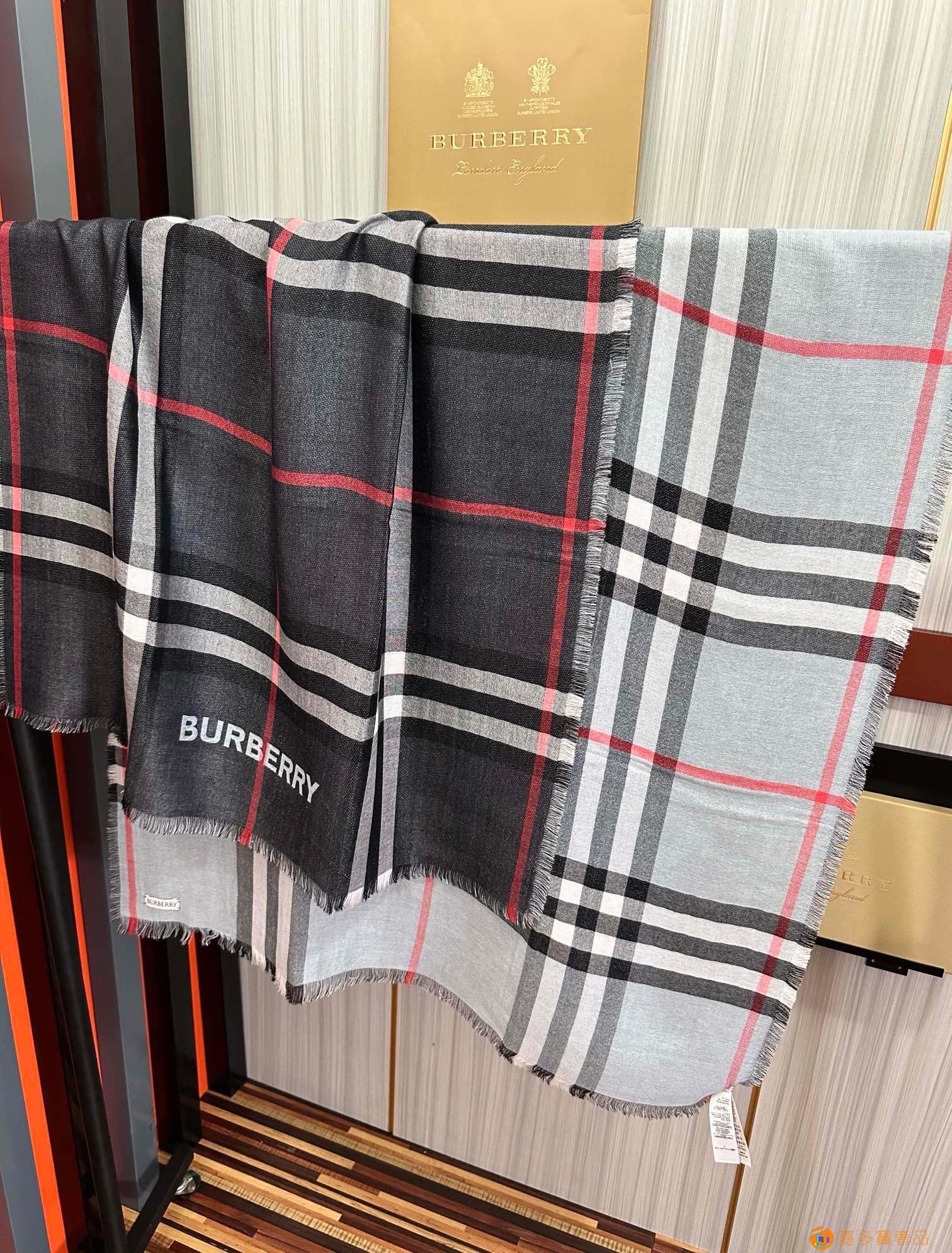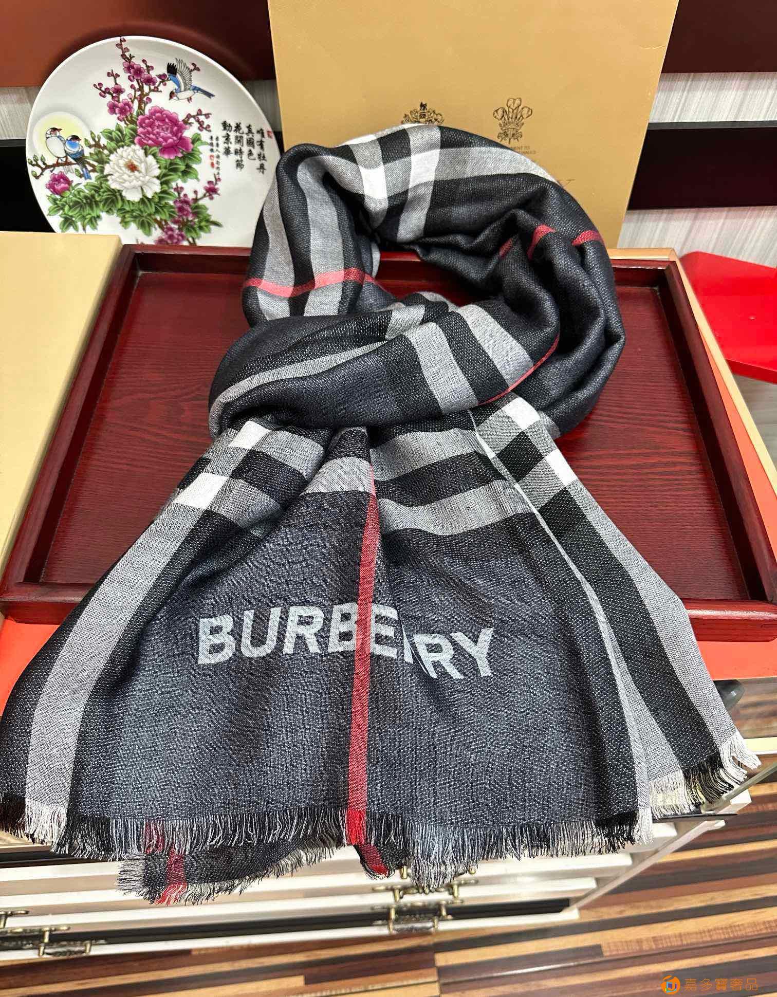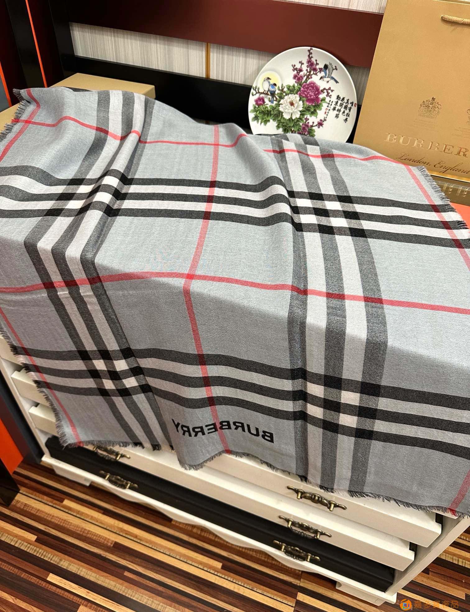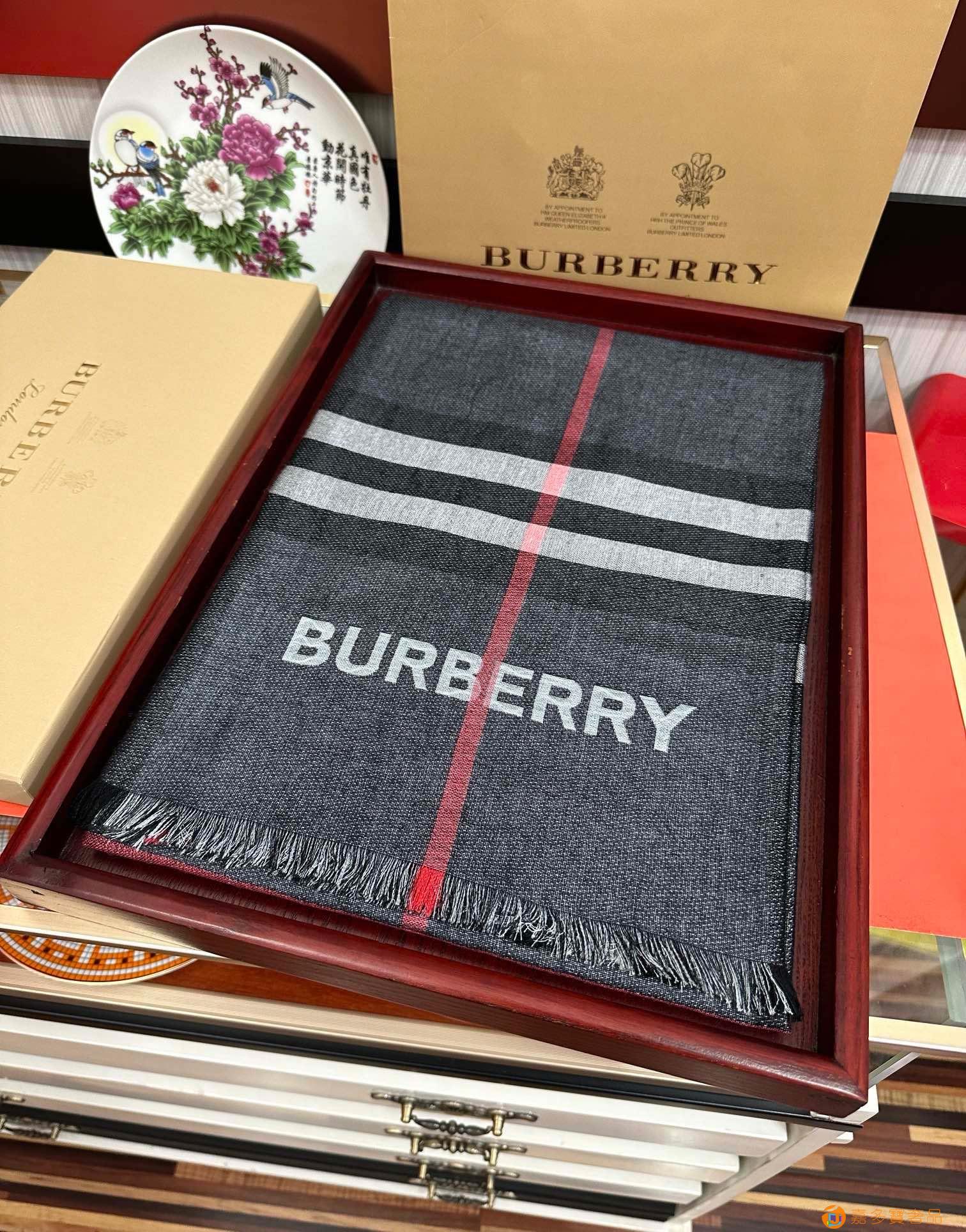 王牌口碑burberry深度水波纹经典羊绒格子围巾‼专柜最新