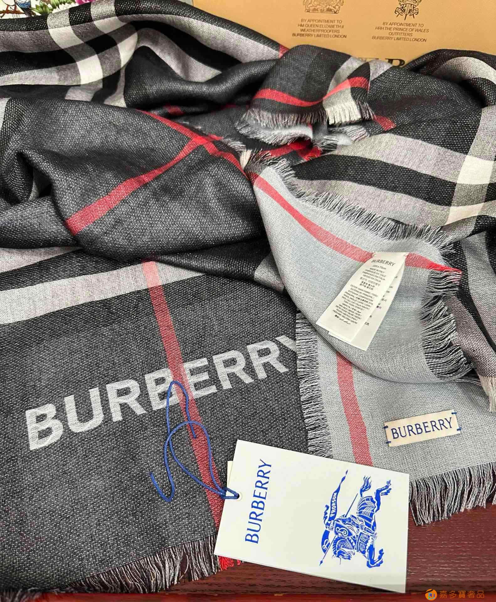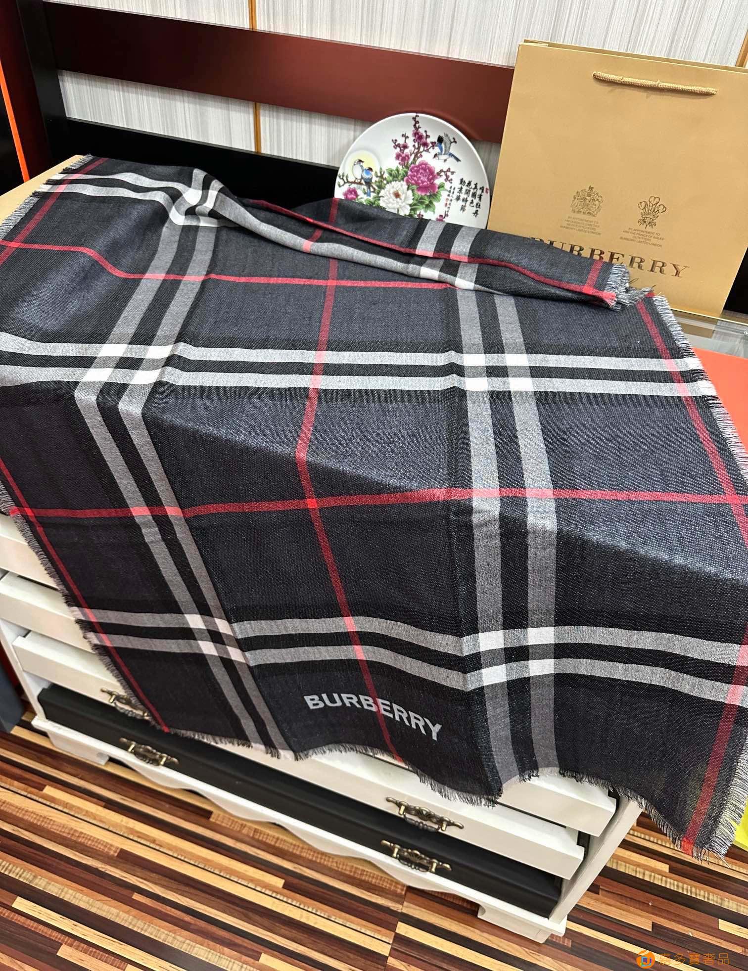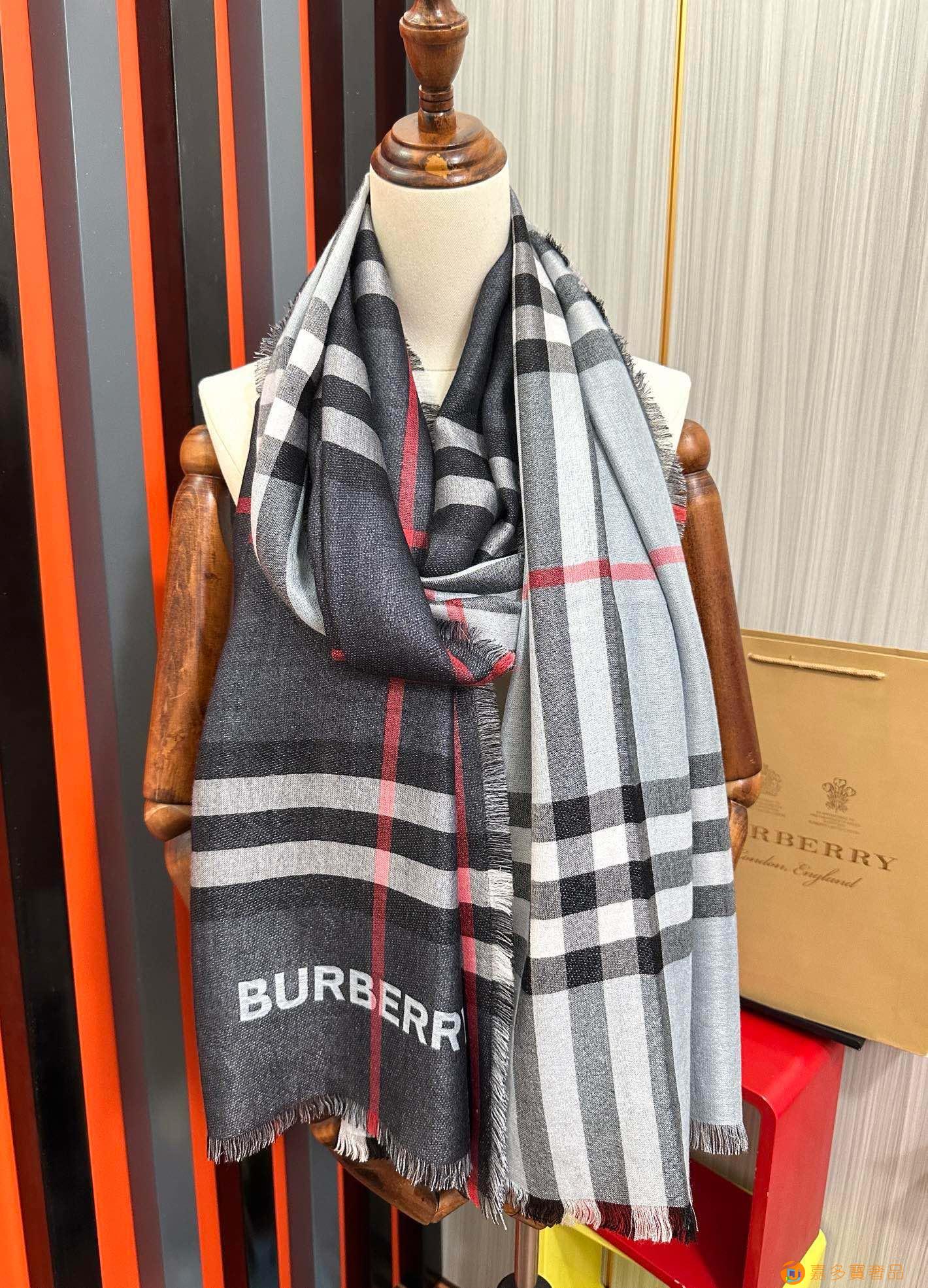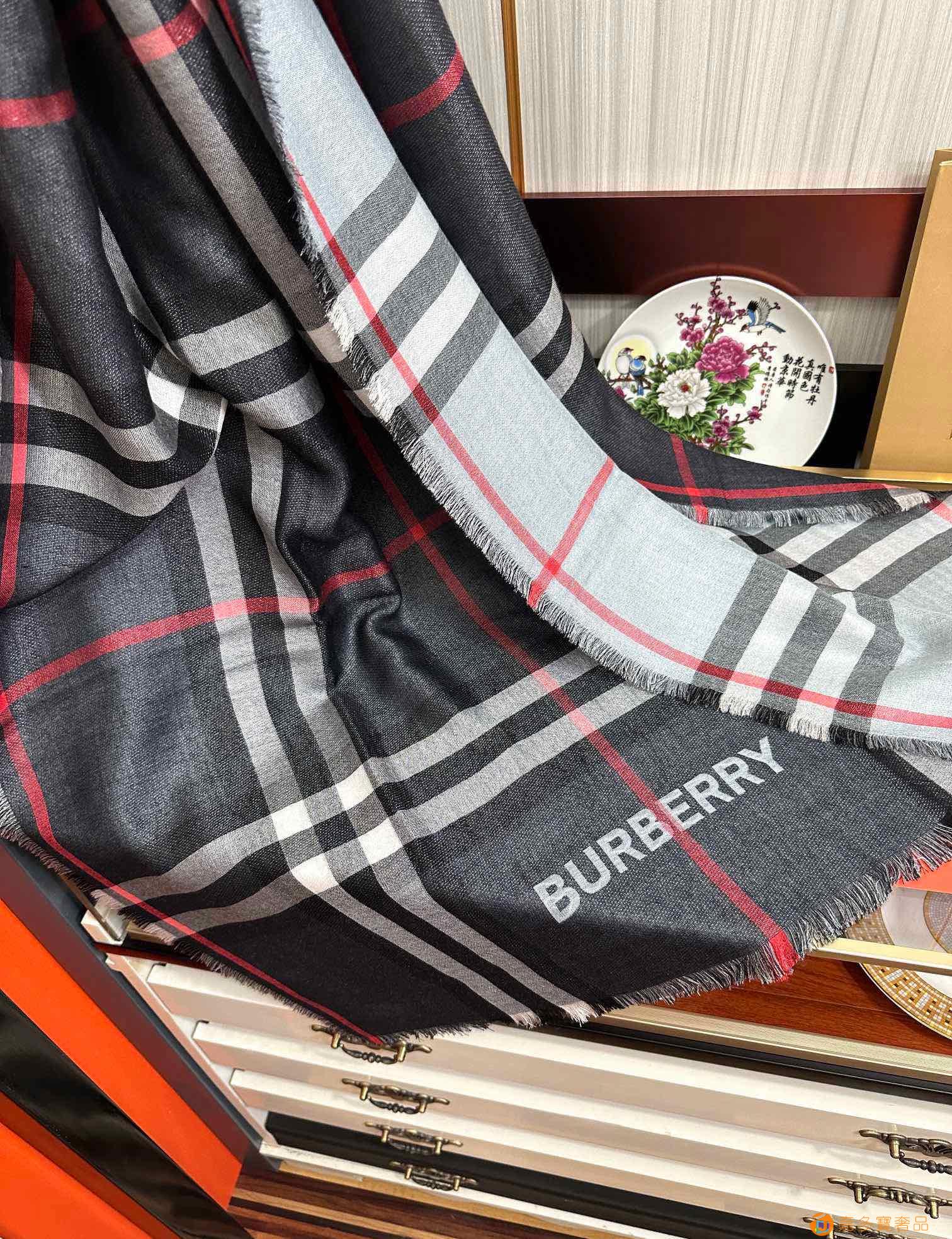王牌口碑burberry深度水波纹经典羊绒格子围巾‼专柜最新