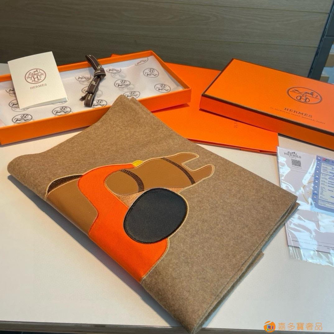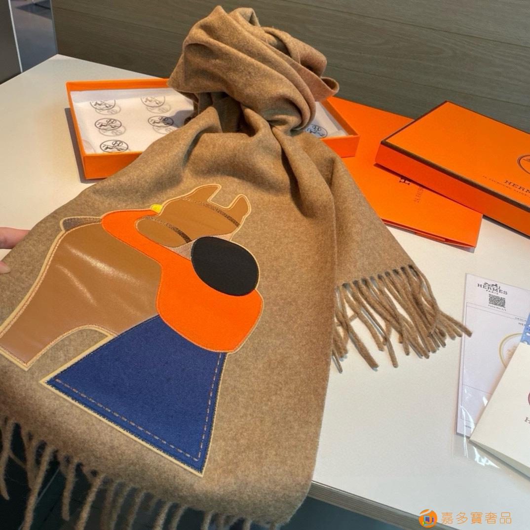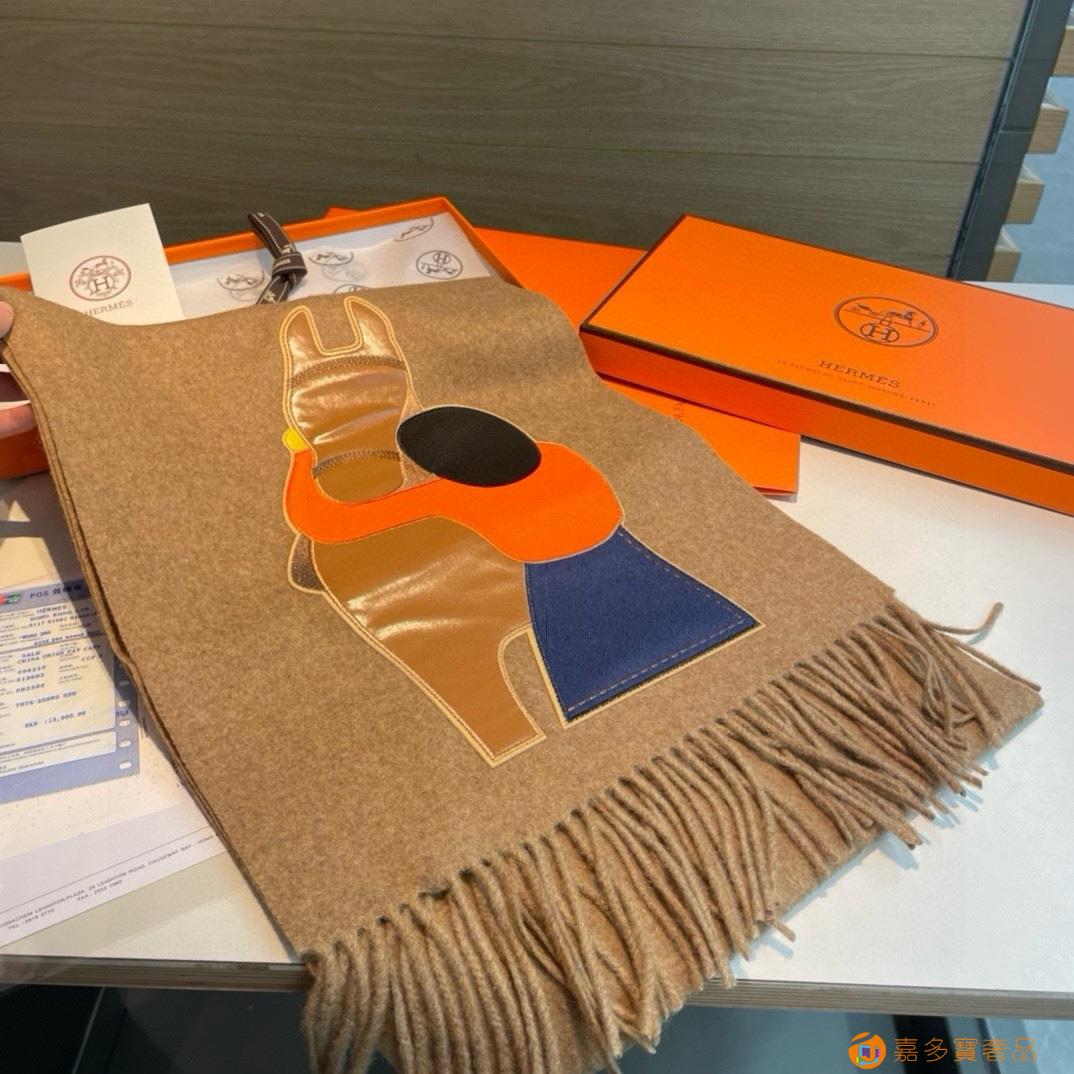 Hermes爱马仕骏马的拥抱系列围巾 %纯山羊绒 真丝,皮革