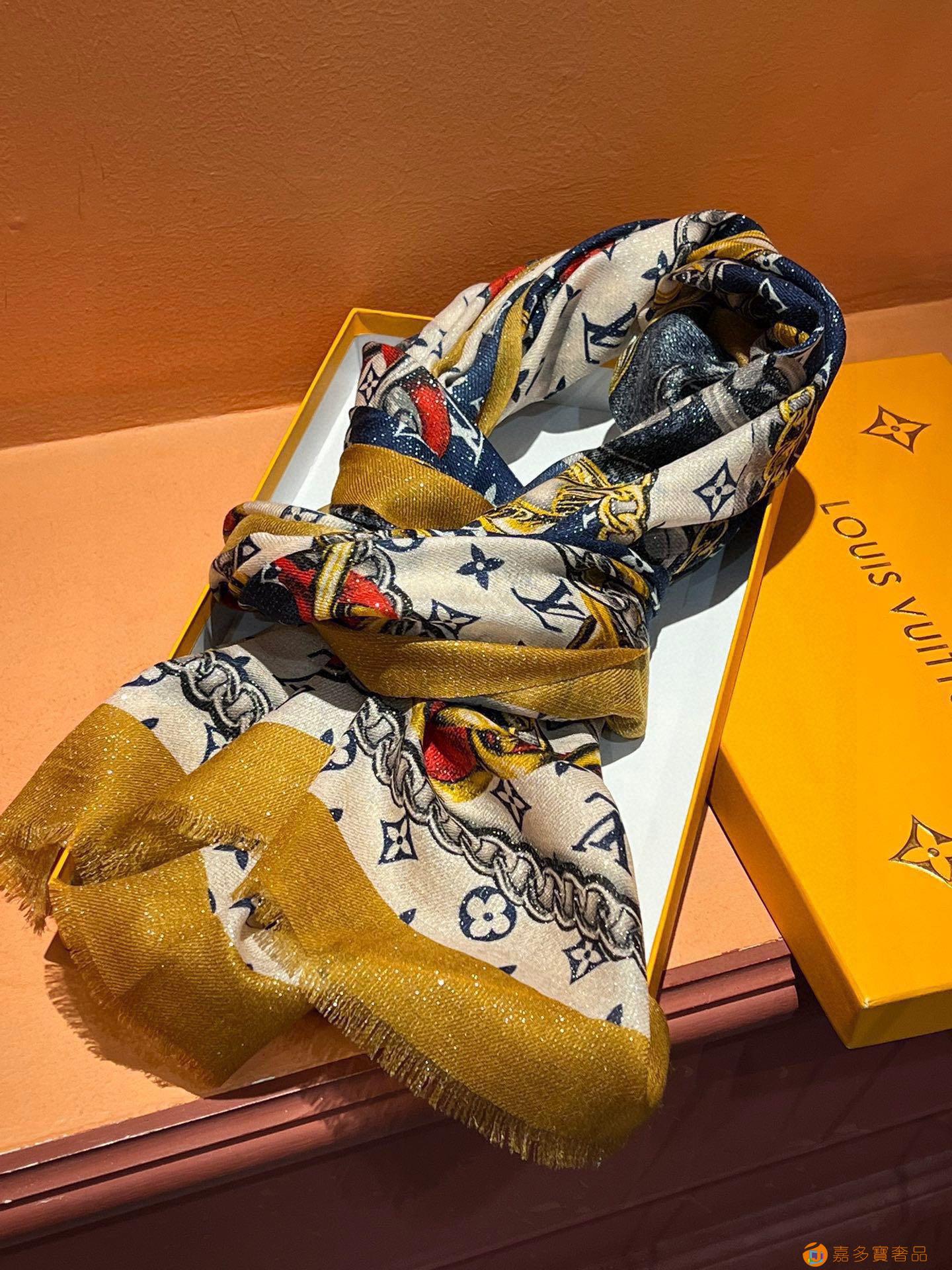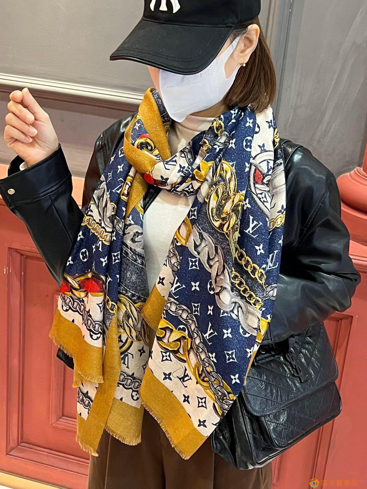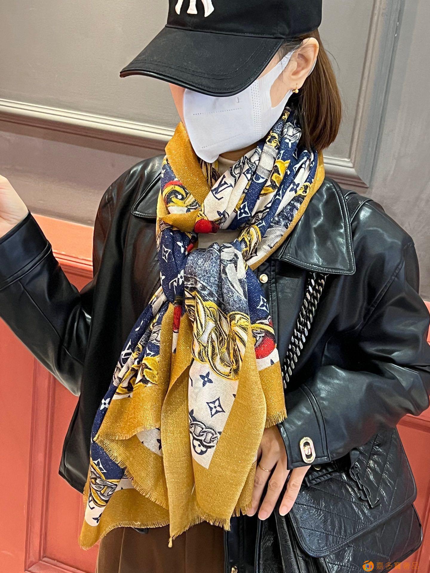 会发光发亮的围巾真心赞‼️驴家【L链条花纹银丝长巾】银丝印花