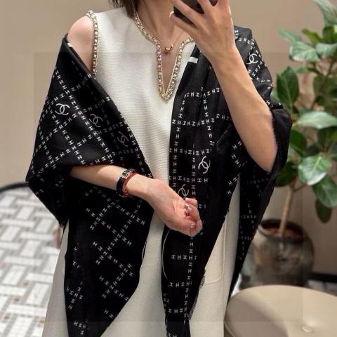 新款??????小香【双C标志网格方巾】须边羊绒方巾‼️抢‼