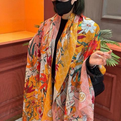 Gucci花卉羊绒围巾~超级抬气色!高级女人味!】羊绒围巾也