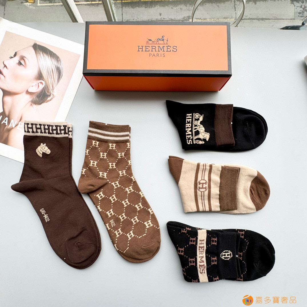 配包装 【一盒五双】HERMER · 爱马仕经典中筒袜子❗️