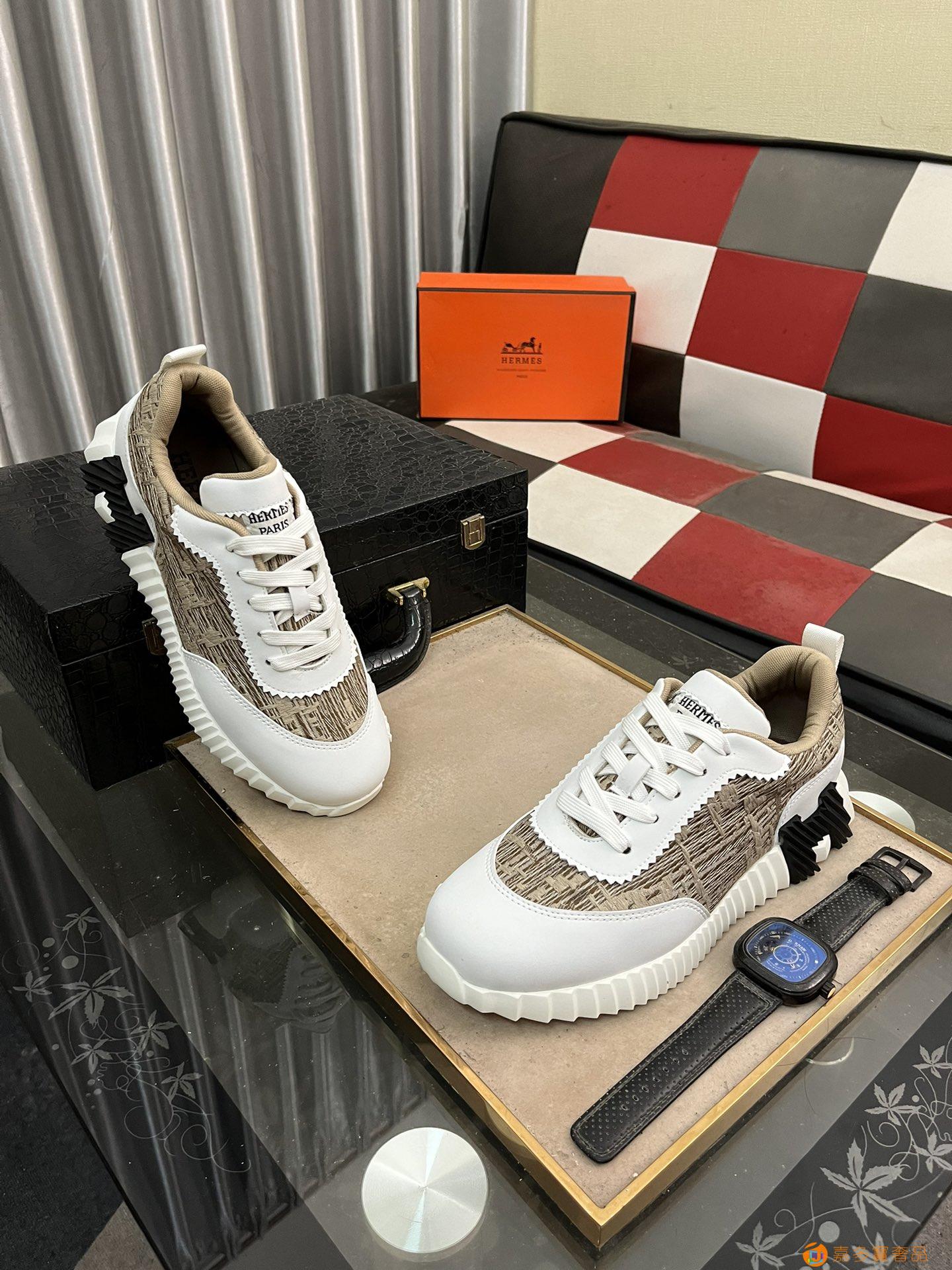 H 爱马仕高端奢品,男士低帮厚底休闲运动鞋,牛皮拼接原版印花