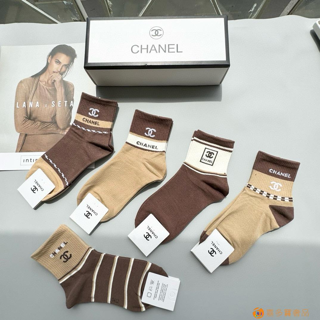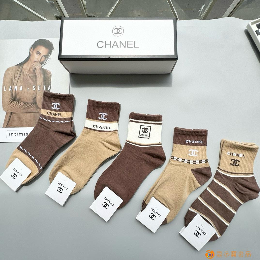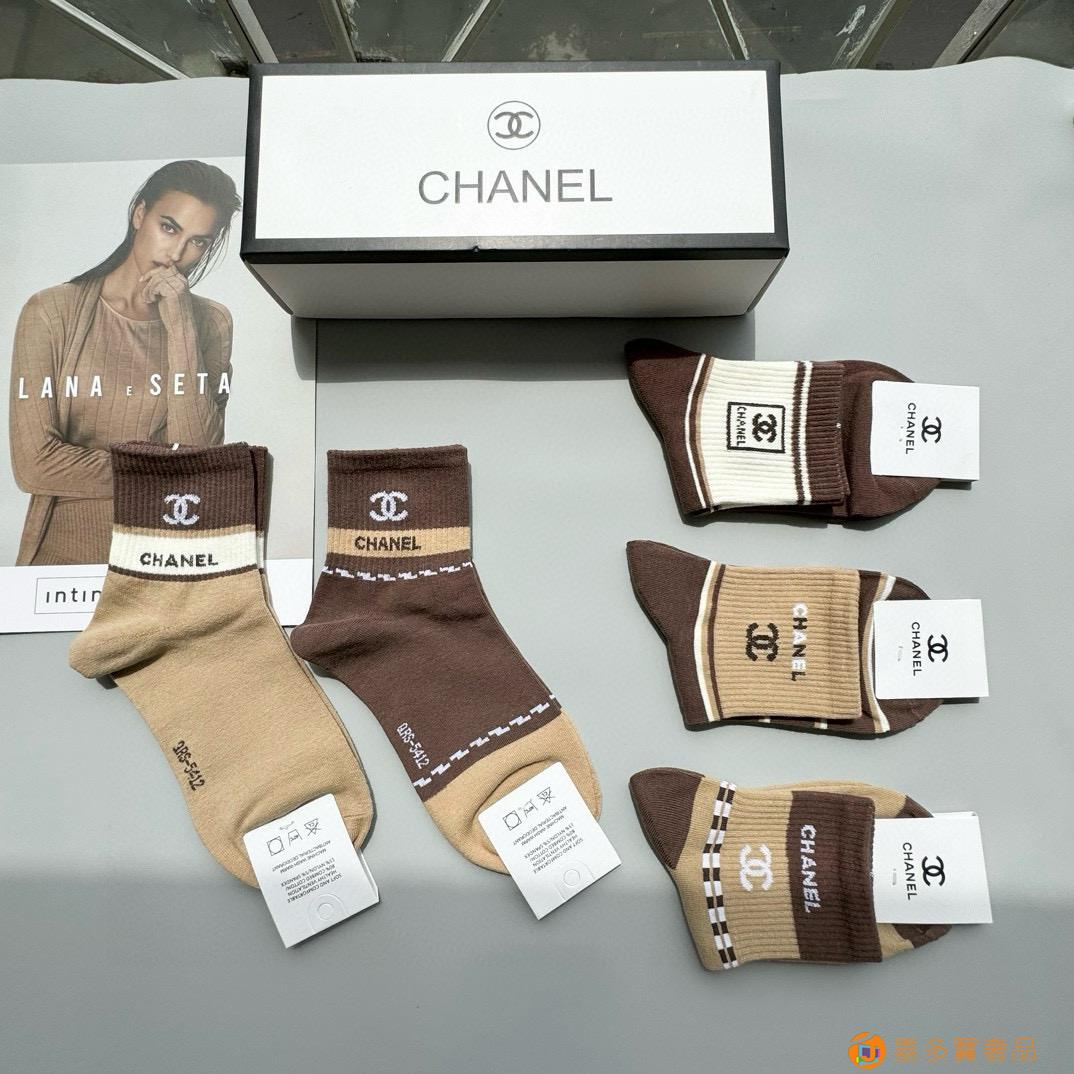 配包装【一盒五双】?CHANEL香奈儿 爆款中筒袜?高版本