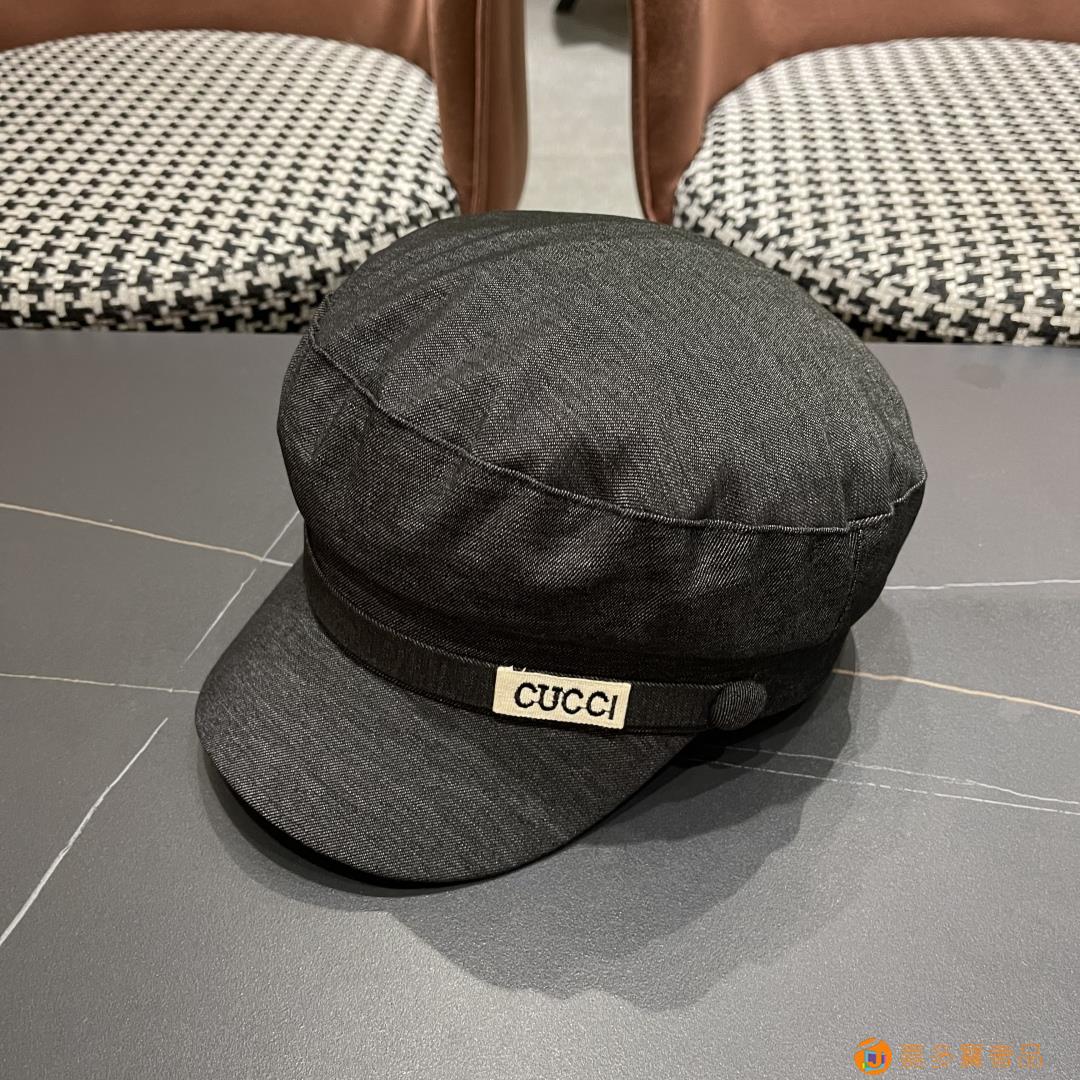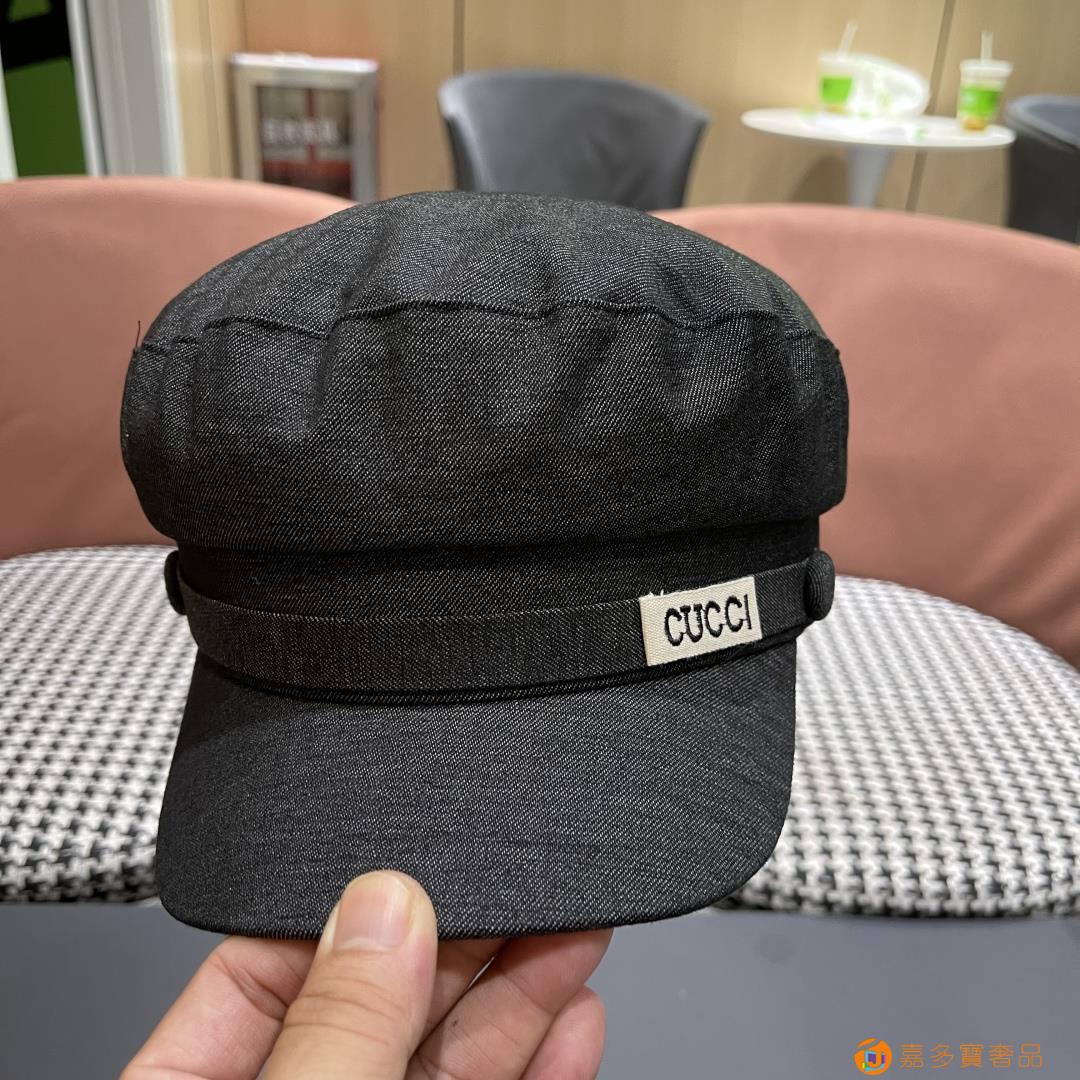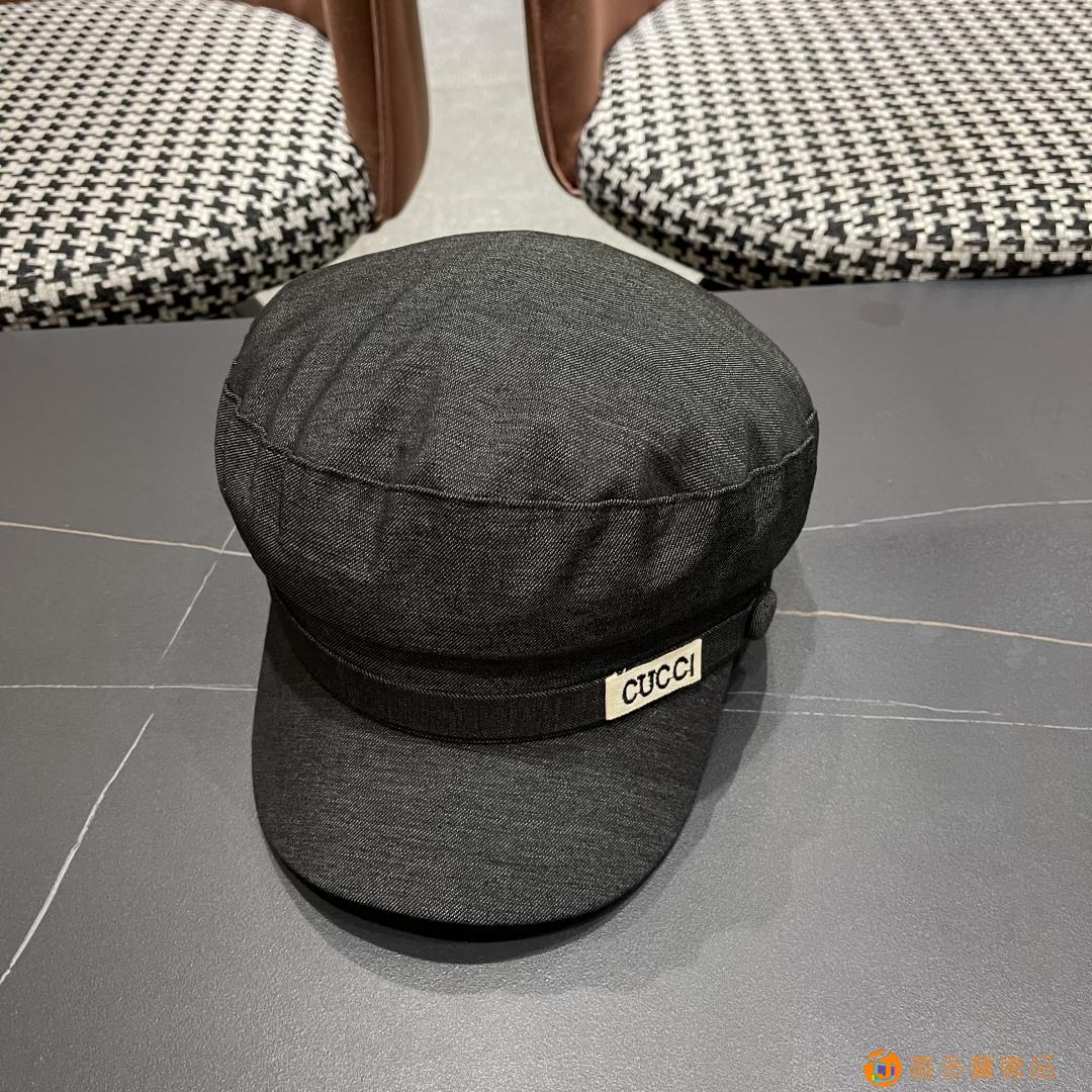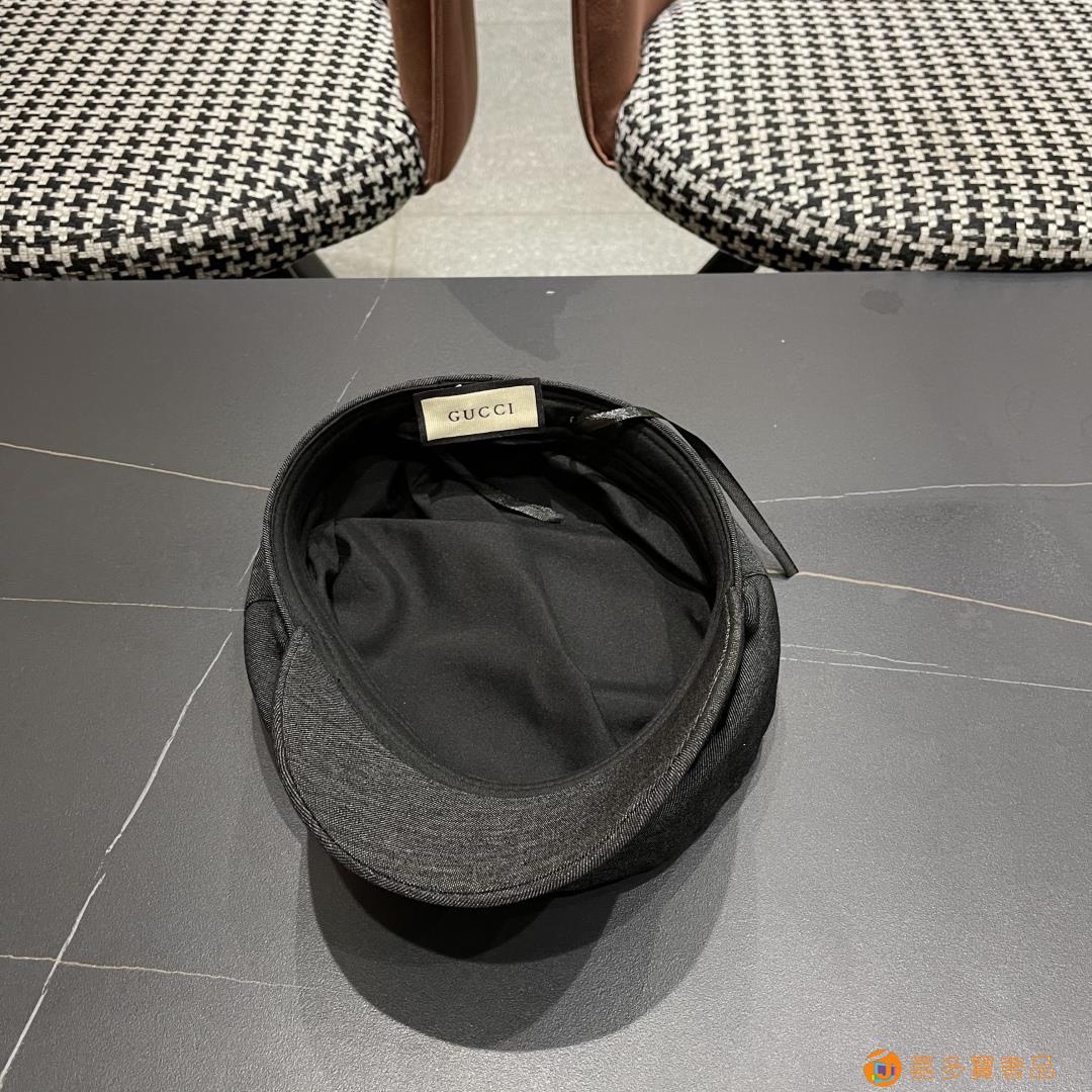 古奇 新款英伦复古海军风平顶帽子女秋冬季显
