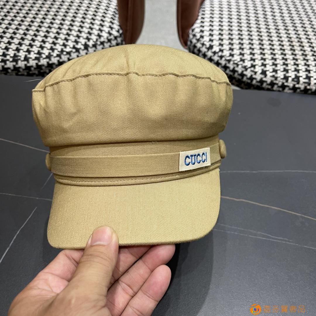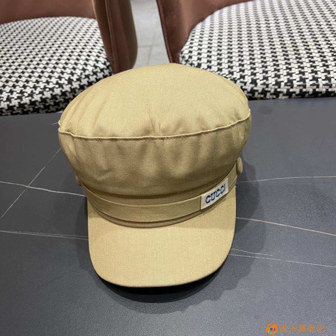 古奇 新款英伦复古海军风平顶帽子女秋冬季显