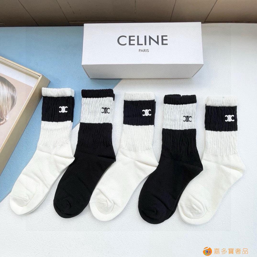 配包装【一盒五双】?Celine赛琳 爆款中筒袜?高版本