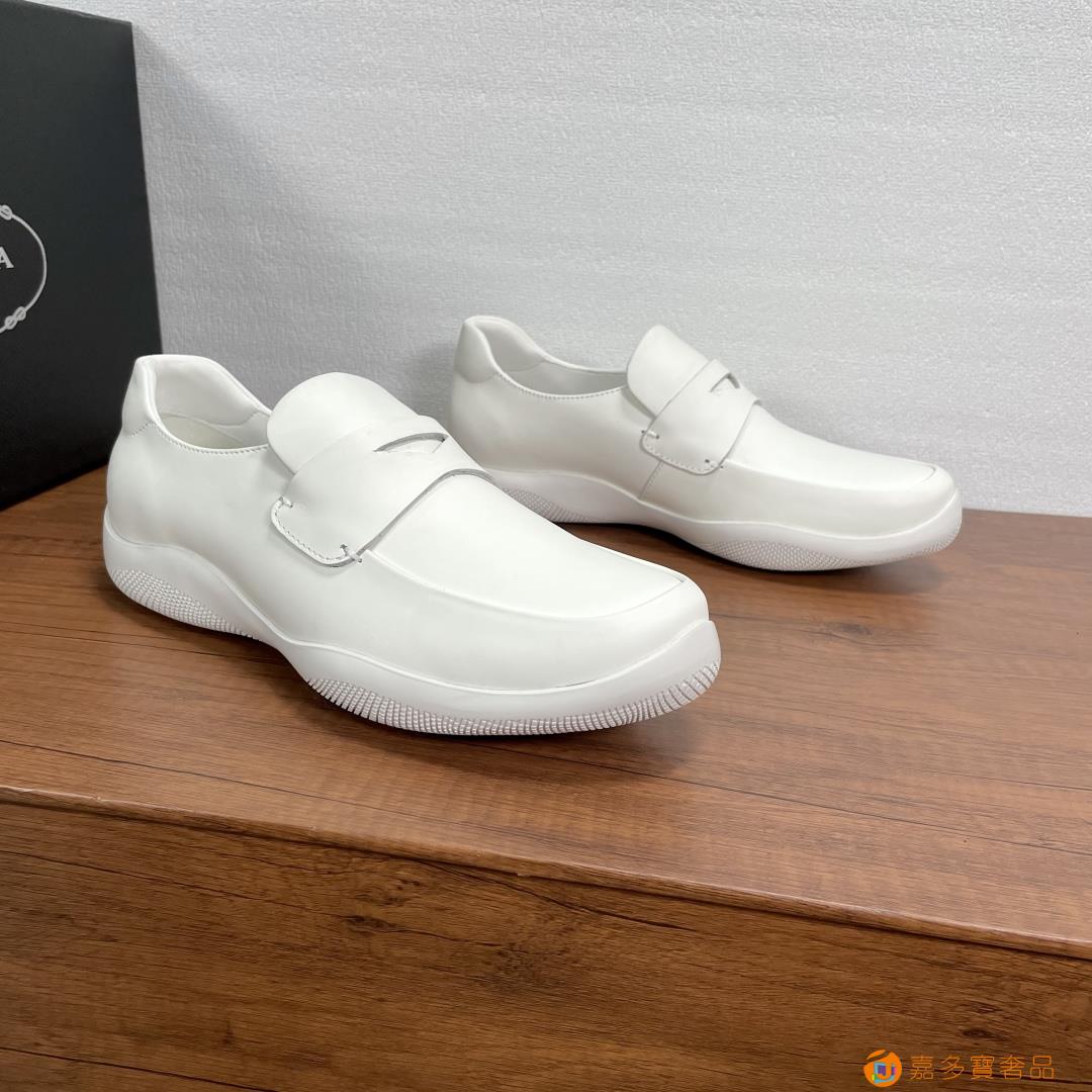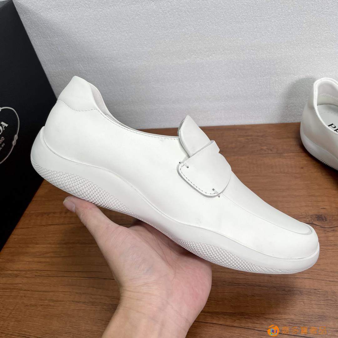 普拉达 复古风 这款皮革运动鞋休闲百搭,鞋底轻盈耐穿,装点