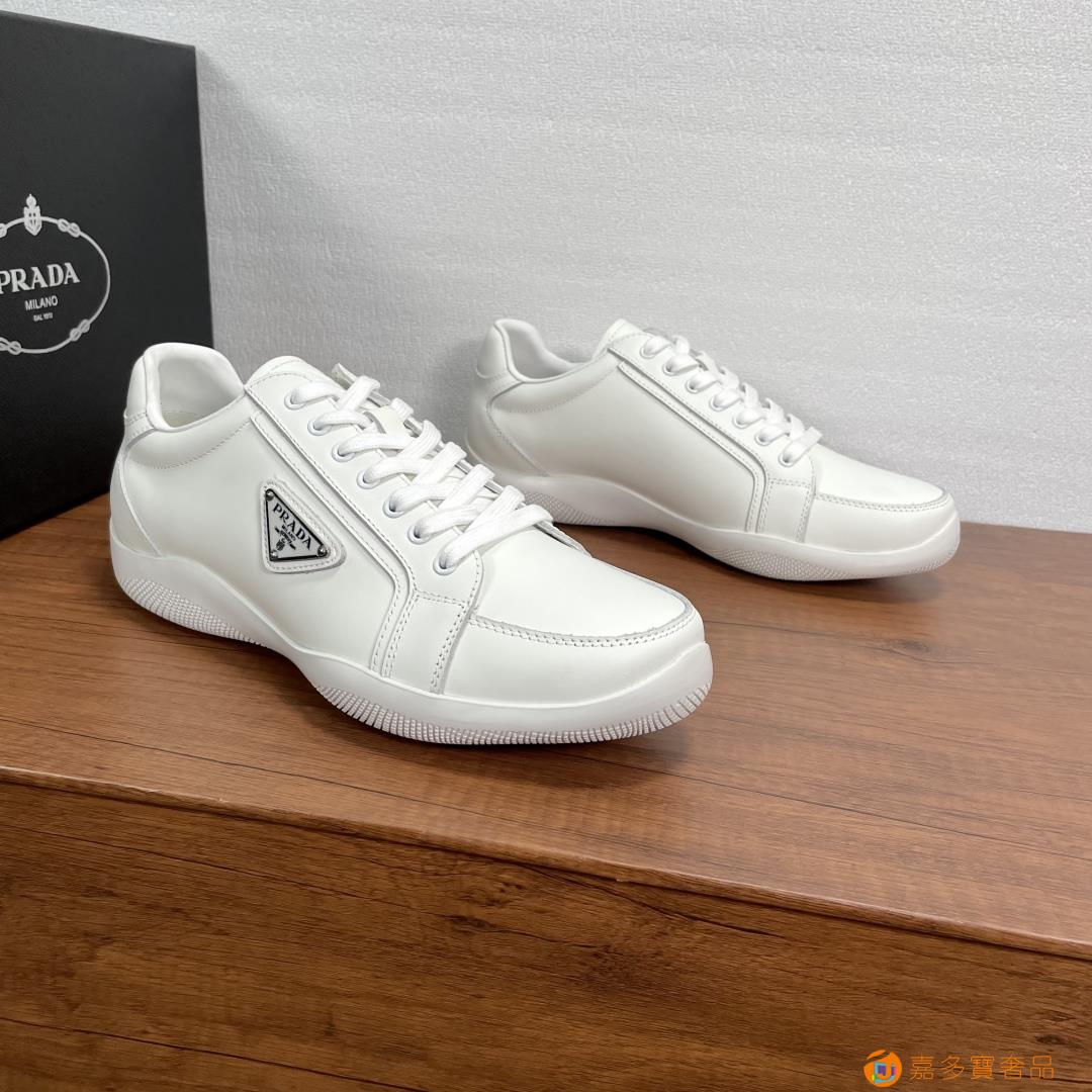 普拉达 复古风 这款皮革运动鞋休闲百搭,鞋底轻盈耐穿,装点