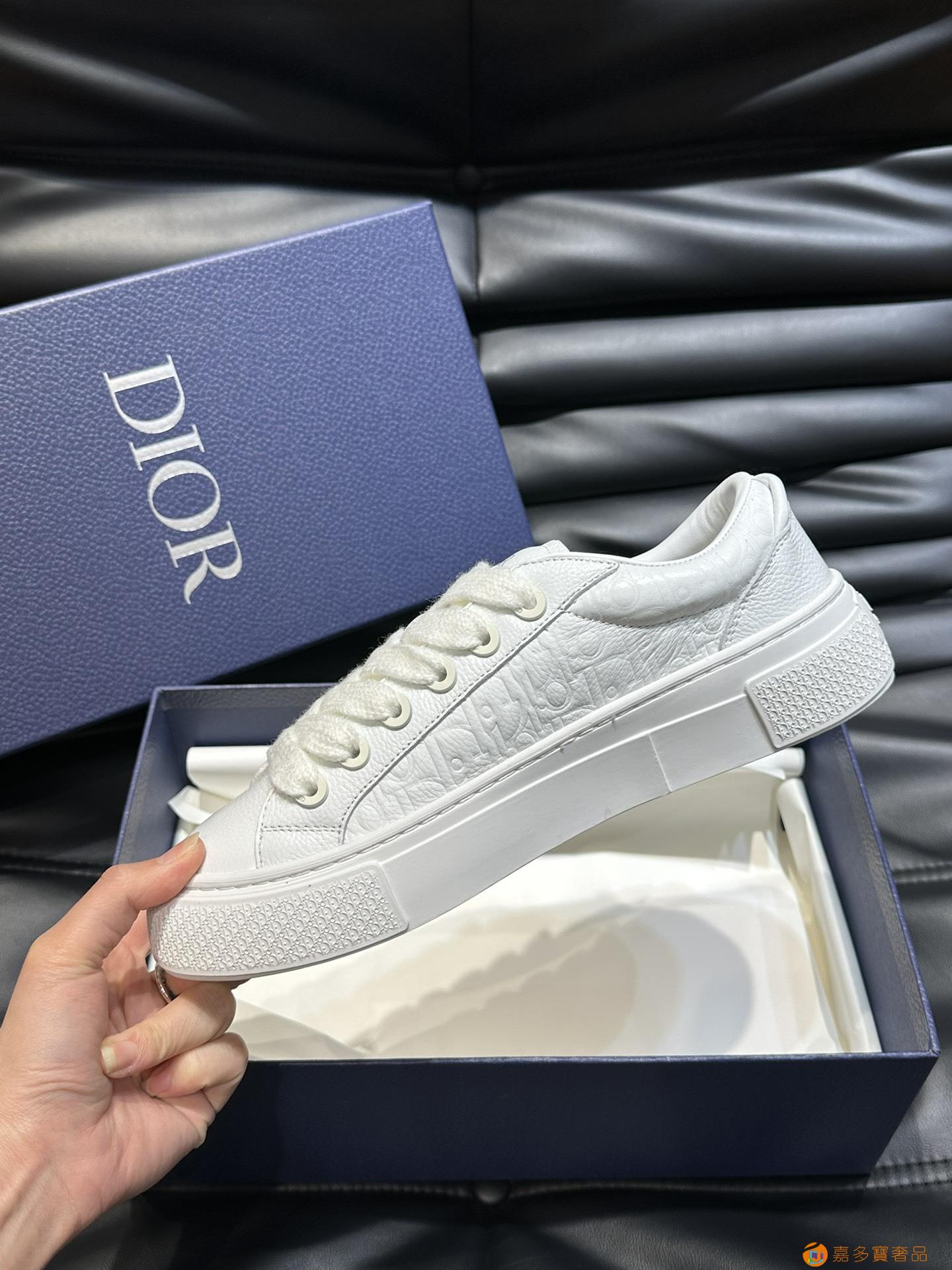 Dior ?这款 B 运动鞋全新演绎经典的网球鞋,时尚廓形突显厚重质感。采用牛皮革精心制作,饰以 Oblique 印花,搭配饰以 Dior 标志的加垫鞋舌、马海毛宽鞋带和哑光饰面同色调黄铜孔眼,别具一格。Oblique 印花效果橡胶鞋底,后侧饰以对比鲜明的 Dior Avenue Montaigne 标志提升格调。可为休闲造型增添时尚气质。 元,Size:-(..定做)