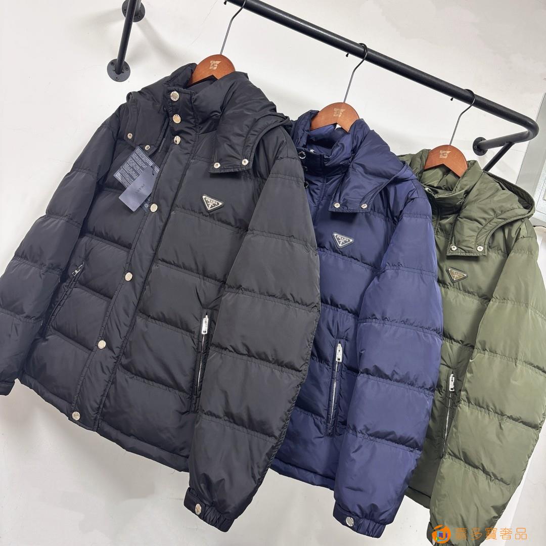 主推羽绒? 最新款时尚设计师款羽绒外套?普拉达连帽羽绒服