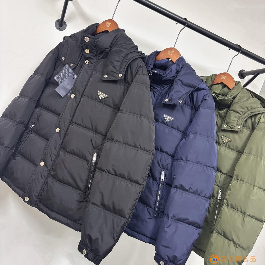 主推羽绒? 最新款时尚设计师款羽绒外套?普拉达连帽羽绒服