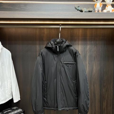 主推羽绒? 最新款时尚设计师款羽绒外套?普拉达连帽羽绒服