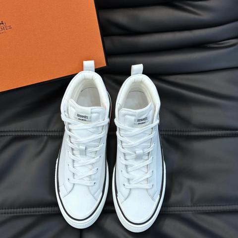 爱马仕* 新品男士高帮休闲运动鞋,斜体H图案牛仔布和小牛皮拼