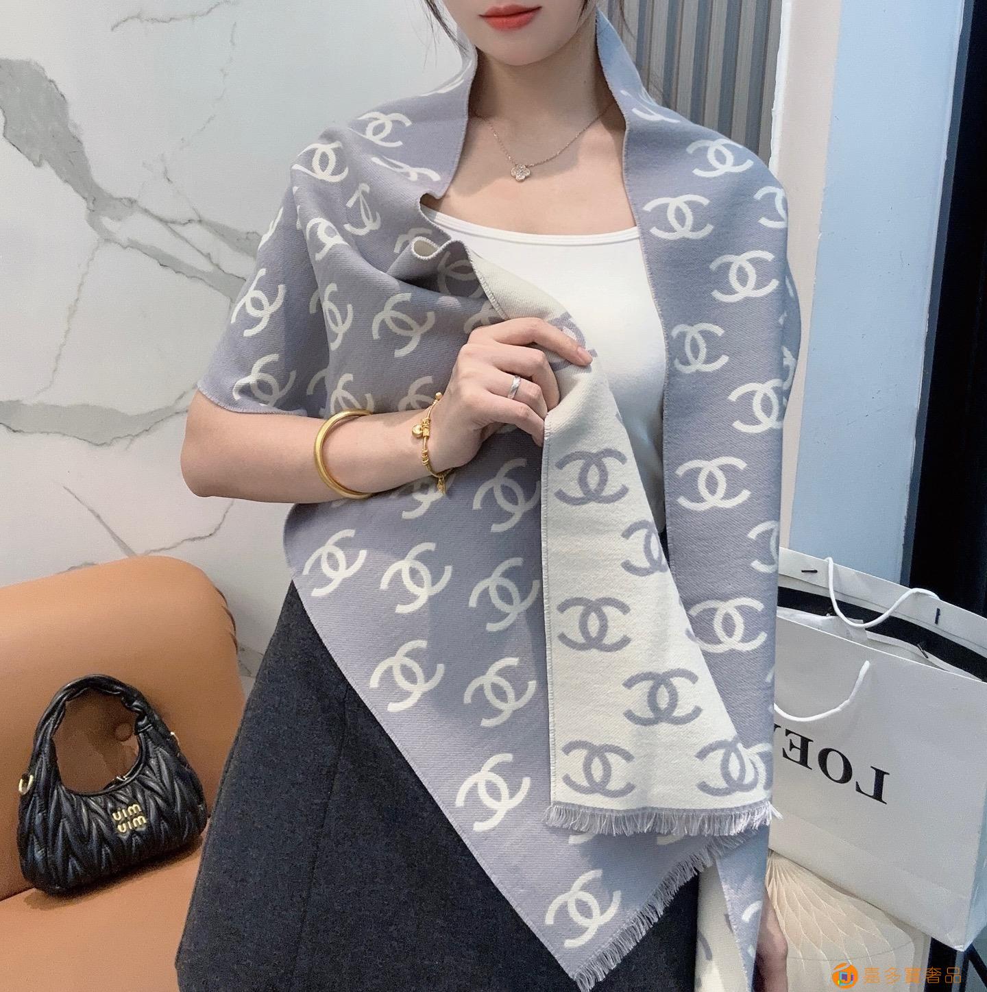 CHANEL(香奈儿)香奶奶B新款双面羊绒围巾披肩,双面设计