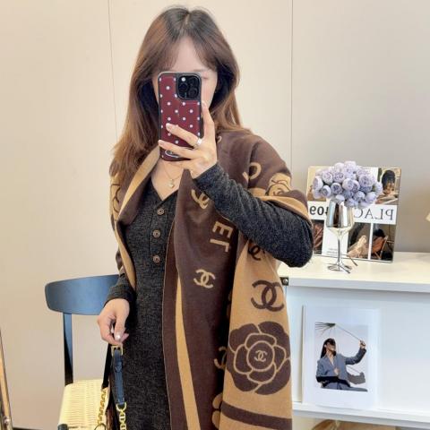 ? chanel香奶奶羊绒双面橘色拼粉色大披肩,超级高级的颜