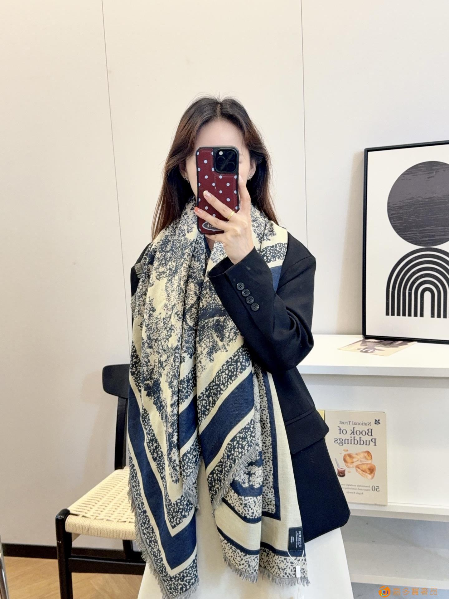 ? DIOR 迪奥CD提花logo印花大方巾围巾披肩毛毯三用